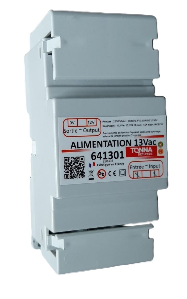 TONNA - Alimentation 12 V~ / 1,5 A pour interphonie - 3 modules rail DIN - Nac & RTC - 641301