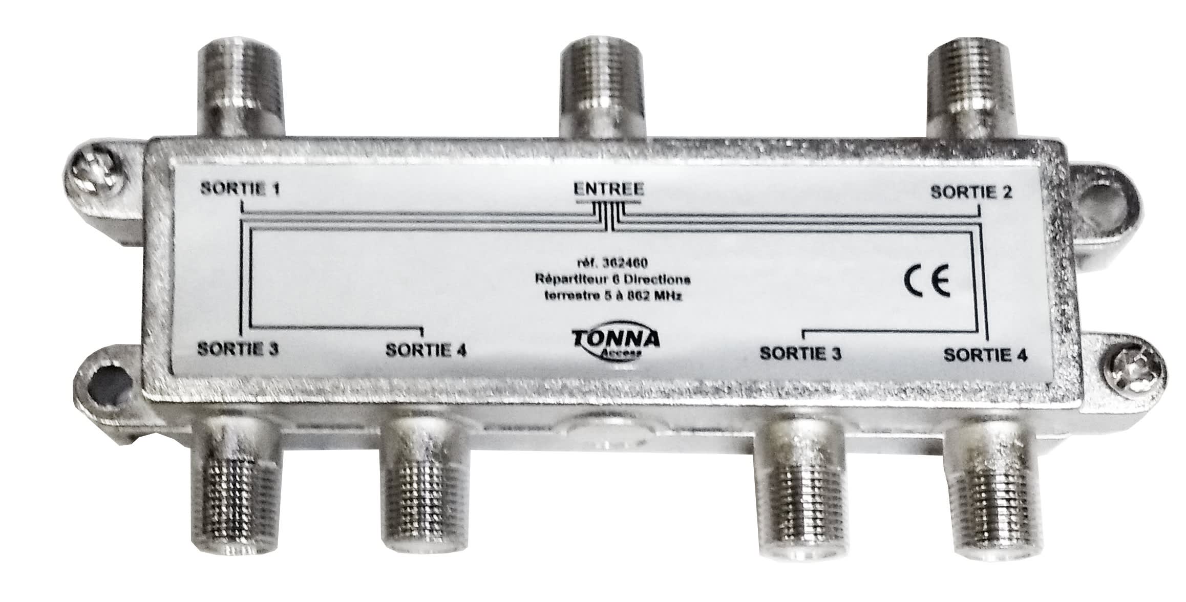 TONNA - Répartiteur 6 voies symétriques 'f' 5/862 mhz, perte de répartition max. 9,5 db - 362460