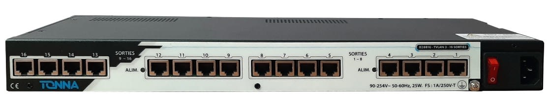 TONNA - Tiroir 19 pouces au format 1U, TVLAN3 Avec voix de retour aux 16 sorties Rj45TV - 828826