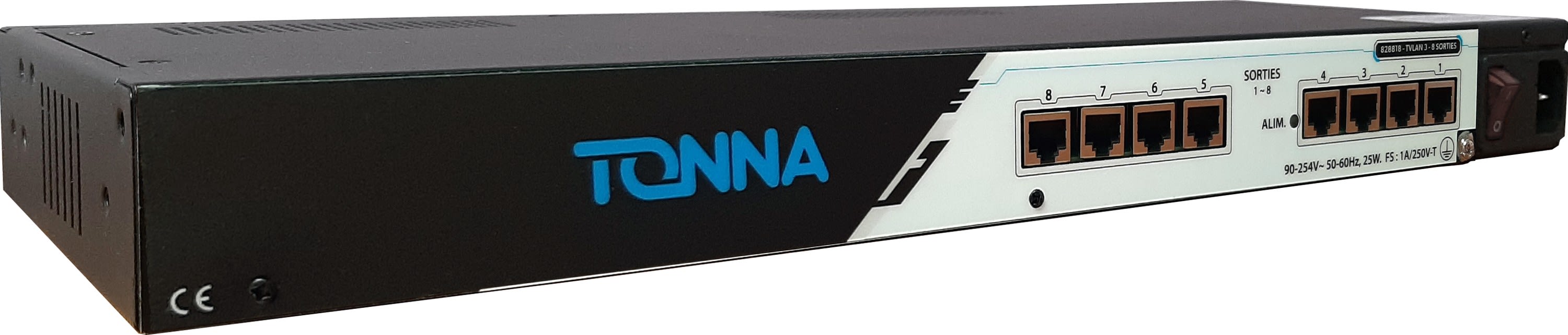 TONNA - Tiroir 19 pouces au format 1U, TVLAN3 Avec voix de retour aux 8 sorties Rj45TV - 828828