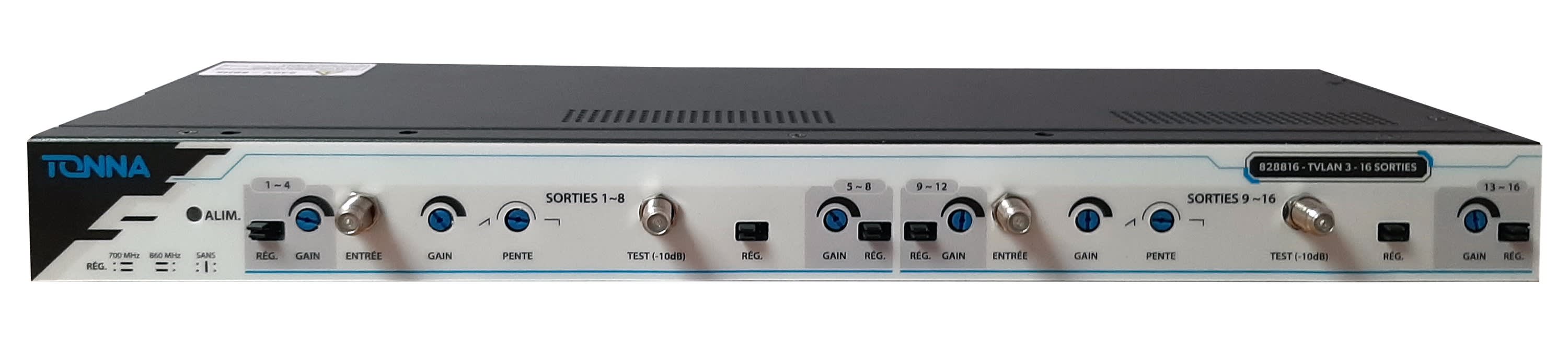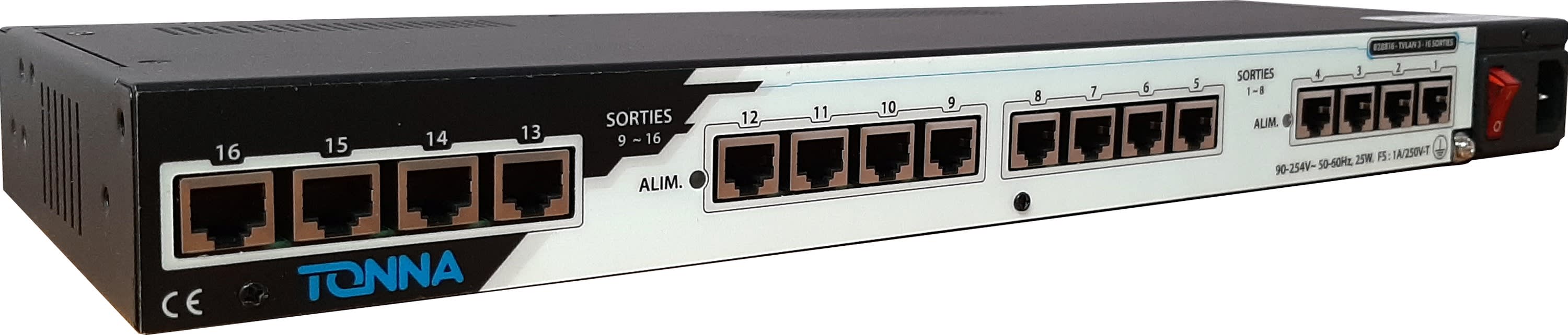 TONNA - Tiroir 19 pouces au format 1U, TVLAN3 sans voix de retour aux 16 sorties Rj45TV - 828816