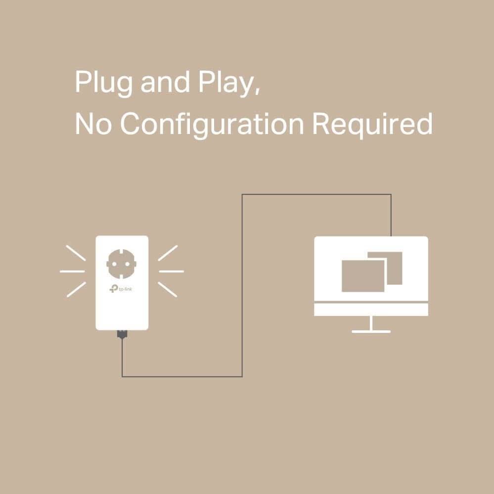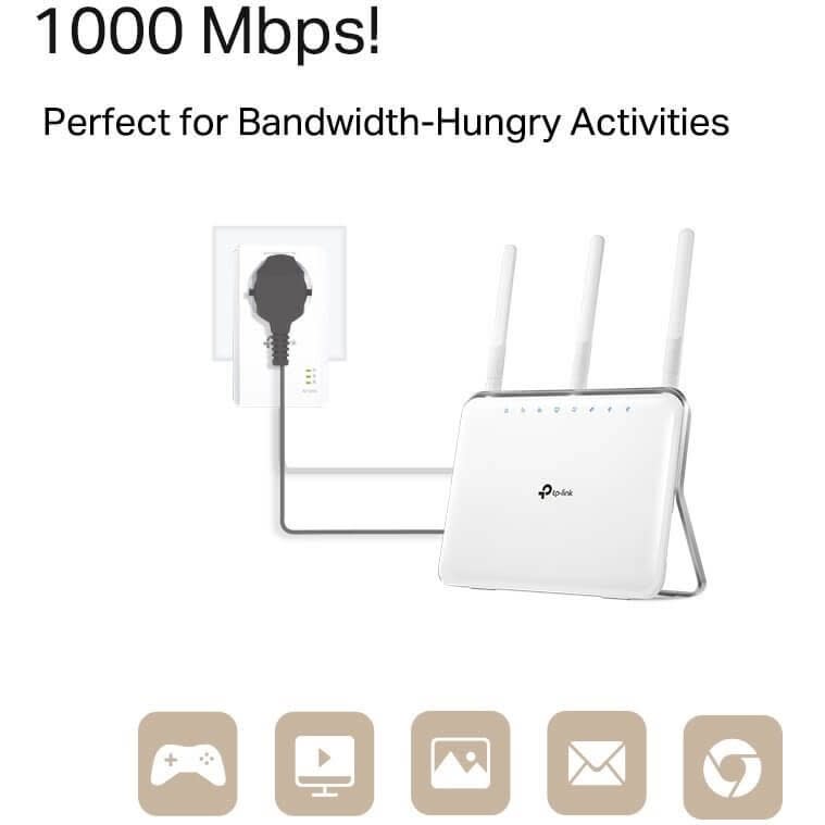 TP-Link Kit CPL Homeplug AV2 débit 1000 Mbps + prise électrique, 1 port Gigabit débit 1000 Mbps, Plug and Play, portée 300m, mode Veille automatique, chiffrement AES 128 bits, QoS intégré, lecture multiple vidéo IPTV HD