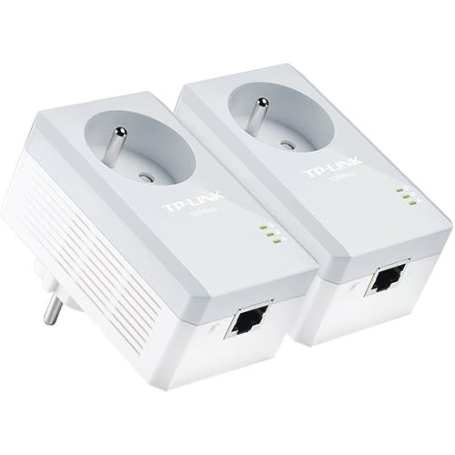 TP-Link Kit CPL Homeplug AV débit 600 Mbps + prise électrique, 1 port RJ45 Fast Ethernet débit 100 Mbps, Plug and Play, portée 300m, mode Veille automatique, chiffrement AES 128 bits, QoS intégré, lecture multiple vidéo IPTV HD