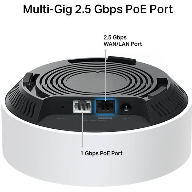 Point d'accès et Répéteur Wifi Interfaces : 1 x RJ45 Gigabits PoE 1 x RJ45 2.5 Gbps PoE Wifi Fréquence: 2.4 GHz & 5 GHz Norme : 802.11a-b-g-n-ac-ax Vitesse : Jusqu'à 574 Mbps @ 2.4 GHz Jusqu'à 2402 Mbps @ 5 GHz Sécurité : WPA - WPA2 - WPA3