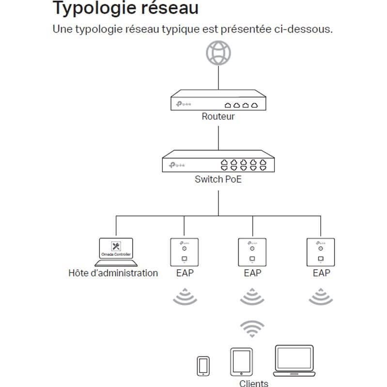 Point d'accès mural WiFi 5 (AC 1200 Mbits Wave2) Gigabit PoE+ Omada MU-MIMO (Encastrable)