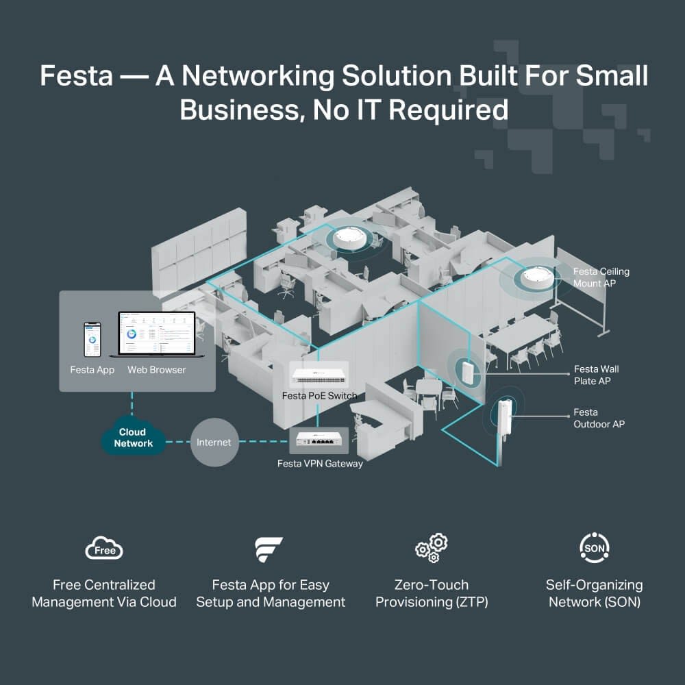 Point d'accès WiFi 6 AX1800 Intérieur - Débit WiFi 6 jusqu'à 1,8 Gbps - Gestion centralisée Cloud via l'application Festa ou le web - L'itinérance Mesh et transparente permet une connectivité sans fil fluide