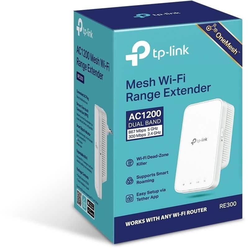 TP-Link Répéteur WiFi 5 AC débit 1200 Mbps bi-bande (867Mbps à 5 GHz + 300 à 2,4 GHz), 2 antennes intégrées, connection facile par bouton WPS, Indicateur de signal intelligent, WiFi OneMesh, Application mobile Tether (iOS / Android)
