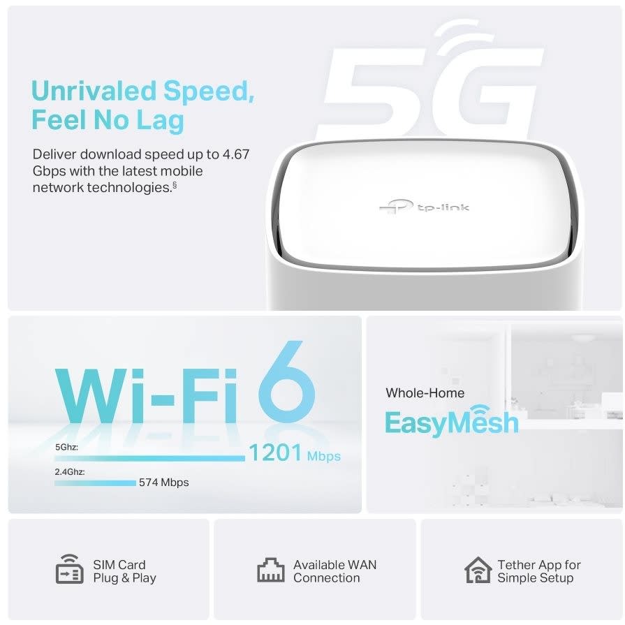 Routeur 5G Gigabit WiFi6 AX1800 bi-bande Archer NX200 - Profitez du partage de vitesse 5G partout - Plug & Play - Compatible EasyMesh - Port WAN/LAN Gigabit