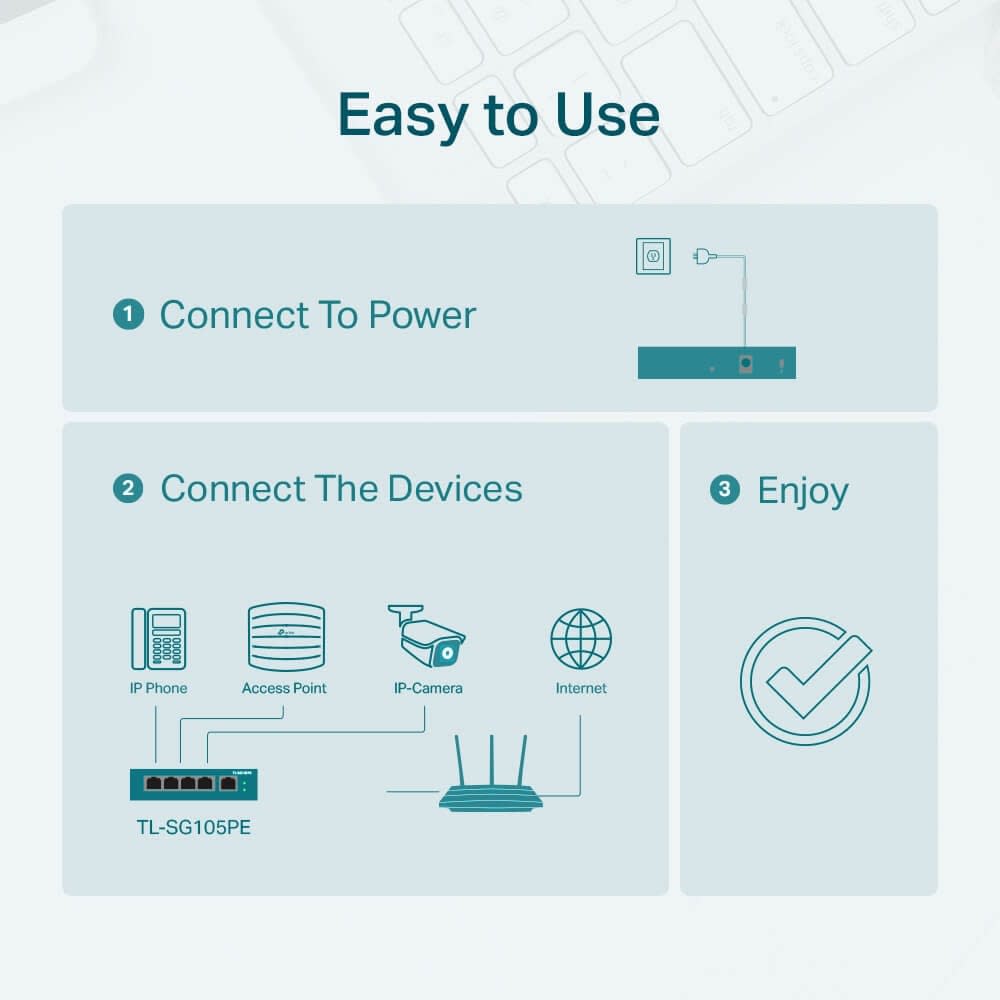 Switch Professionnel 5 ports Gigabit avec 4 ports PoE+ - Easy Smart Switch PoE polyvalent facile à utiliser aux performances puissantes - Scénarios d'applications multiples - 4 ports PoE+ dédiés (budget 65 W) pour de nombreuses applications