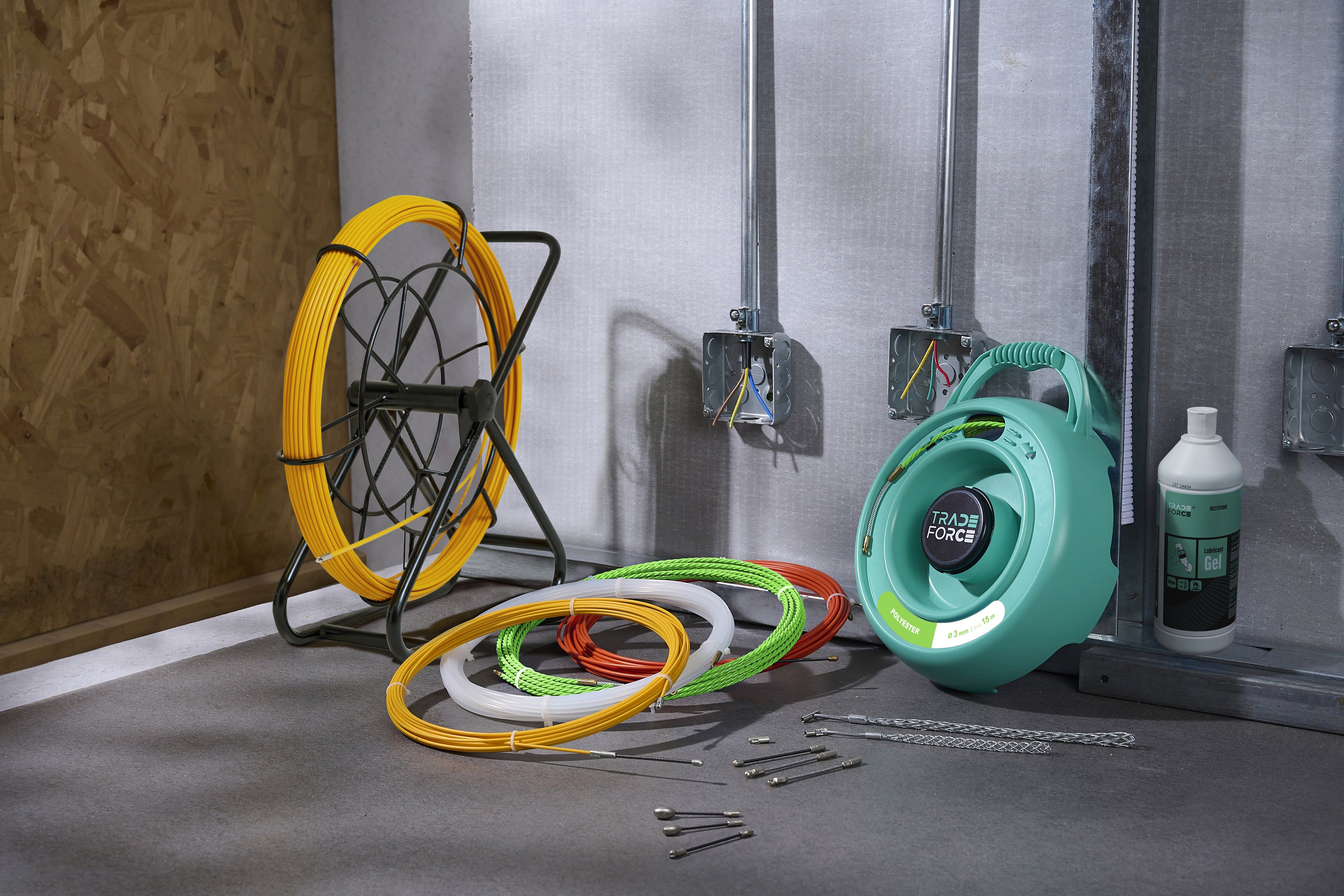 Simplifiez vos passages de câbles avec la gamme TradeforceConçue pour vos besoins professionnels, la gamme d’aiguilles tir-fils et d’accessoires Tradeforce facilite le passage de câbles dans les conduits et installations électriques, même dans les environnements les plus contraints.Les tir-fils en fibre de verre, nylon ou acier-nylon combinent robustesse et maniabilité pour une manipulation fluide et sans effort, quelle que soit la configuration. Les accessoires, comme les embouts de guidage, raccords et têtes interchangeables, vous permettent d’adapter votre matériel à chaque situation, optimisant ainsi vos interventions.Avec Tradeforce, vous disposez d’outils fiables et durables pour réaliser vos installations électriques avec précision et efficacité.