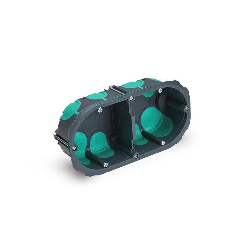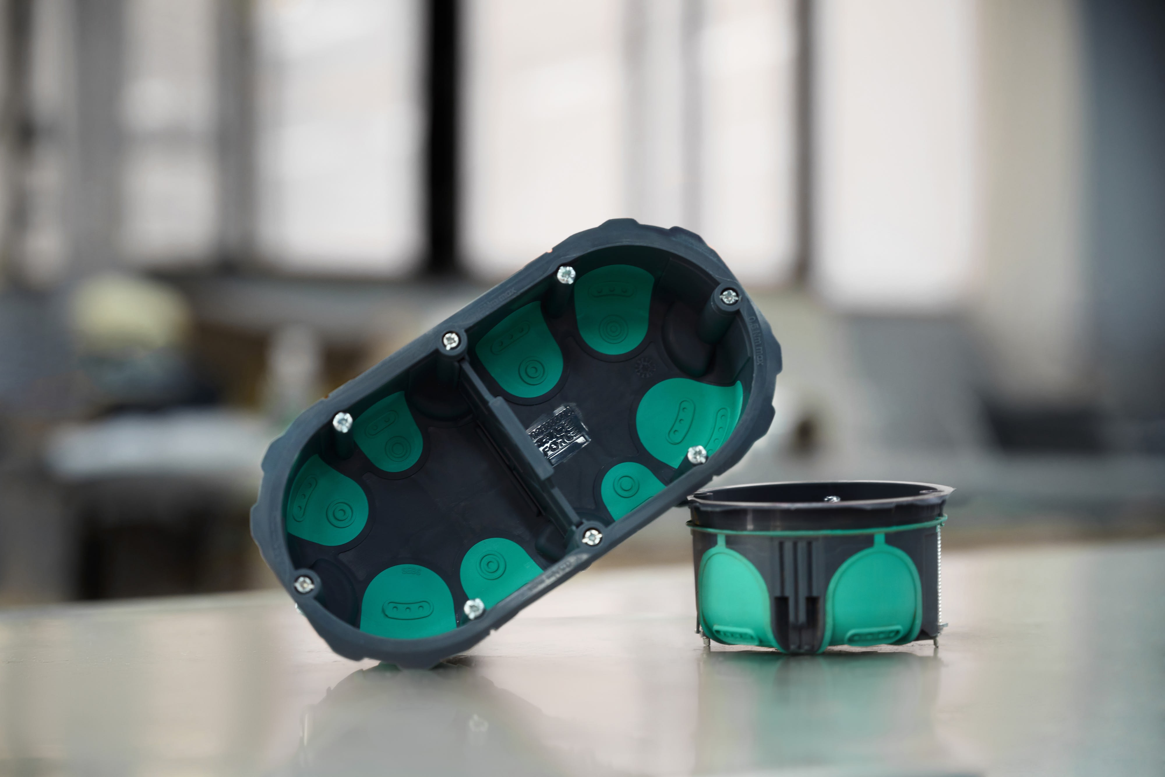 Boîtes d'Appareillage TRADEFORCE – Performance et Fiabilité pour vos installations électriquesConformes à la norme NF EN 60670-1 et à la directive 2014/35/UE, les boîtes d'appareillage TRADEFORCE sont spécialement conçues pour répondre aux exigences des bâtiments basse consommation (BBC). Avec un volume intérieur 10 % supérieur à la moyenne du marché, elles offrent une capacité accrue pour l'intégration des équipements électriques tout en garantissant un maximum de sécurité et de qualité à vos installations.Dotées d’une étanchéité exceptionnelle de 99 % à l’air, ces boîtes assurent une parfaite isolation, contribuant ainsi à la performance énergétique des bâtiments et à la protection des composants électriques.La gamme TRADEFORCE se décline en boîtes de profondeur 40 mm (boîtes grises) et 50 mm (boîtes blanches), adaptées à une large variété d'applications :Entrées multiples : Adaptées aux gaines ICTA jusqu’au Ø25mm et aux câbles électriques jusqu’au 16mm², avec une entrée spécifique pour câble R02V 3G2.5 et/ou VVF 3G1,5 sans gaine.Installation rapide : Grâce à une collierette large, fine et profilée, elle s’adapte précisément aux perçages, particulièrement en rénovation. Les étriers de fixation métalliques, imperdables et guidés, ainsi que le triple filetage de la vis, permettent une installation ultra rapide. L’ouverture facile des opercules, manuelle ou via le câble ou la gaine, facilite encore davantage l’intervention.De plus, les boîtes TRADEFORCE sont éco-conçues : le packaging « 0 plastique » pour les boîtes de 2, 3, et 4 postes, et « 0 packaging » pour les boîtes 1 poste, réduisent votre production de déchets et participent à une démarche durable.