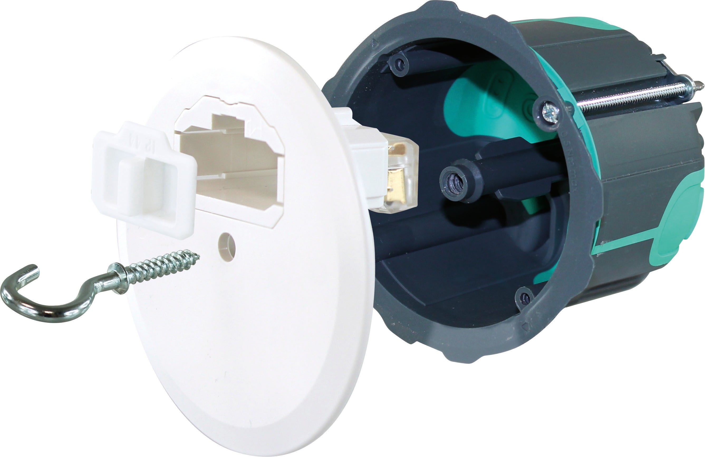 Ensemble boîte Ø68/H60 étanche à l’air RE2020+ couvercle DCL + piton + capot de protection IP44, pour cloisons sèches et acceptant des gaines ICT Ø16 / 20 et câbles électriques 3G2,5² max.
