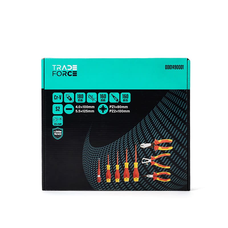 TradeForce - Jeu de 8 outils isoles : 3 pinces, 4 tournevis, 1 testeur. Manche bi-matiere - 0001490001