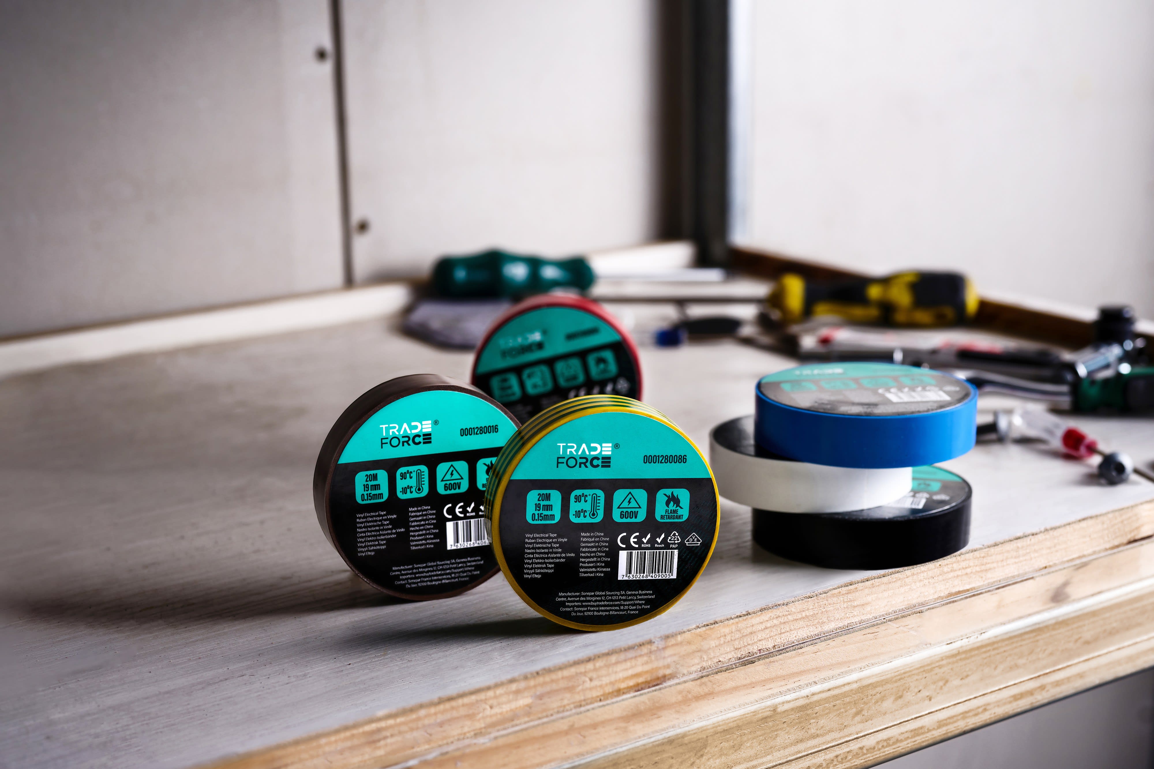 Rubans d'Isolation Tradeforce – Sécurité, Fiabilité et Performance pour vos installations électriquesAssurez la sécurité et la fiabilité de vos installations électriques avec notre gamme de rubans d'isolation de haute qualité, spécialement conçus pour les professionnels de l’électricité.Fabriqués en PVC sans halogène, nos rubans sont autoextinguibles (ignifuges), offrant une sécurité accrue contre les risques d'incendie. Leur résistance aux températures allant de -10°C à 90°C permet une utilisation fiable dans des conditions variées.Les rubans d’isolation Tradeforce sont certifiés VDE, garantissant une isolation électrique jusqu'à 600V, ce qui les rend idéaux pour toutes vos applications électriques, y compris pour les installations domestiques, industrielles ou en environnements exigeants. Grâce à leur qualité et leur conformité aux normes, vous bénéficiez d’une solution d’isolation durable et performante.