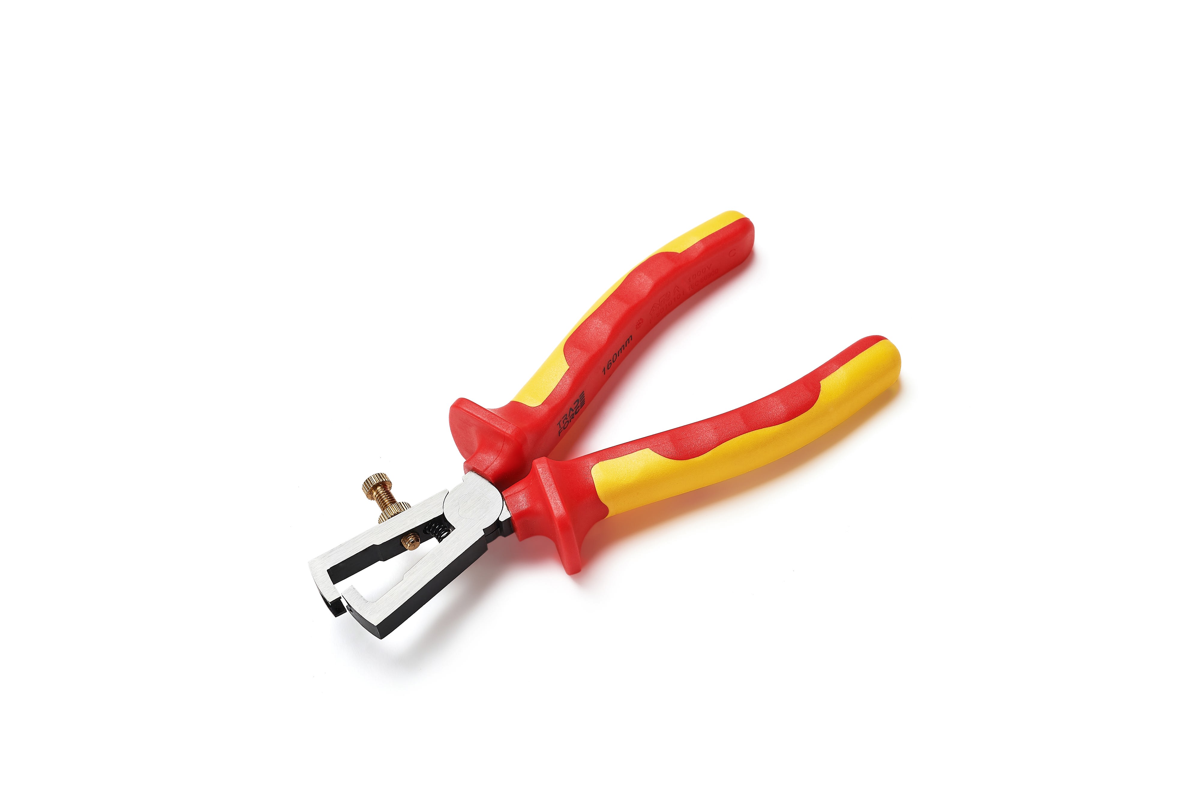 Pince à dénuder isolée 1000V - 160 mm. Pour câbles de 0,5 à 2,5 mm. Manche bi-matière, Chrome Vanadium. Précision et sécurité garanties.