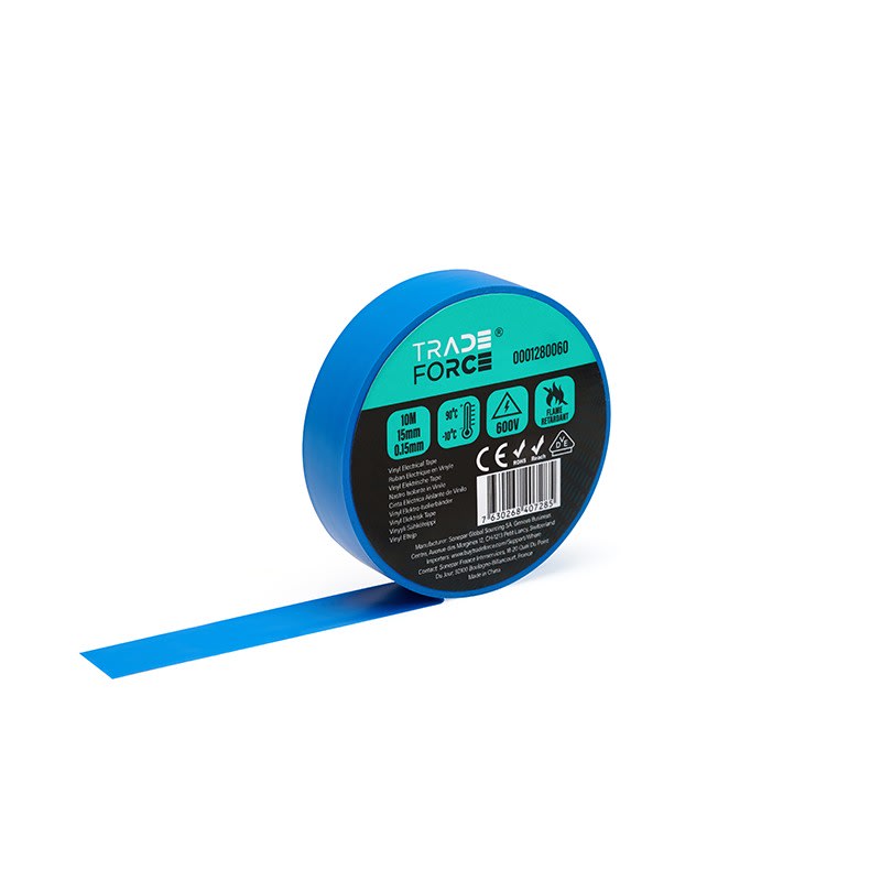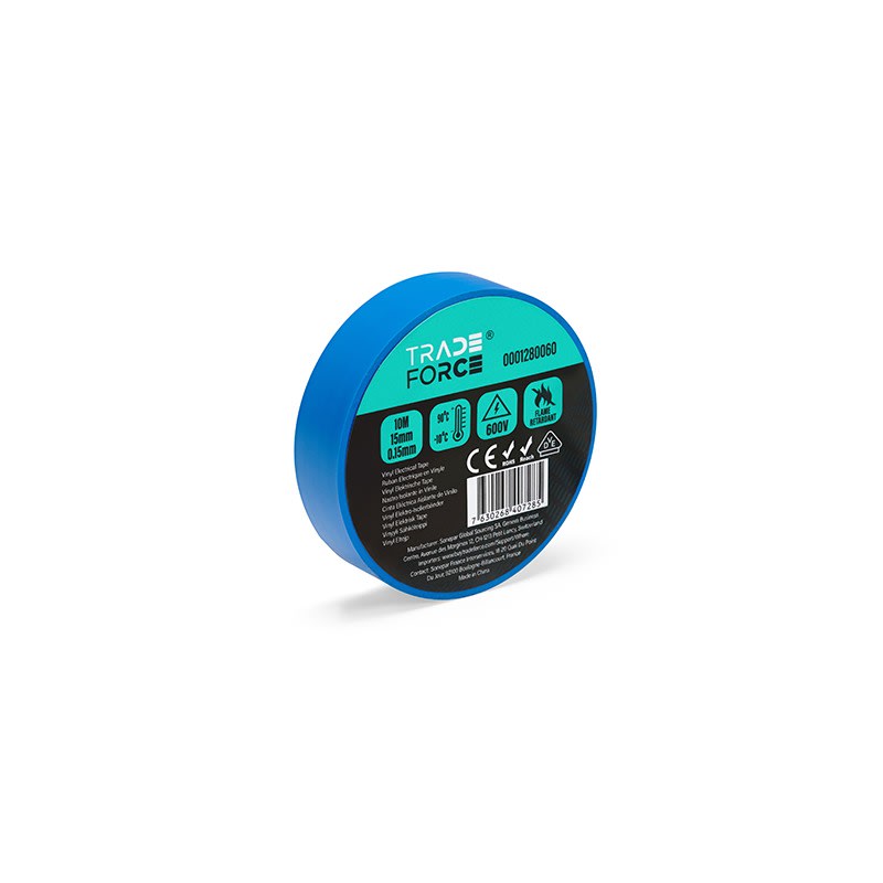 TradeForce - Ruban adhesif PVC bleu, VDE, 600 V, -10C-90C, E: 0,15 mm, L: 15 mm, Long 10 m - 0001280060