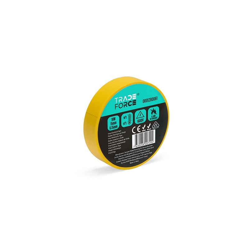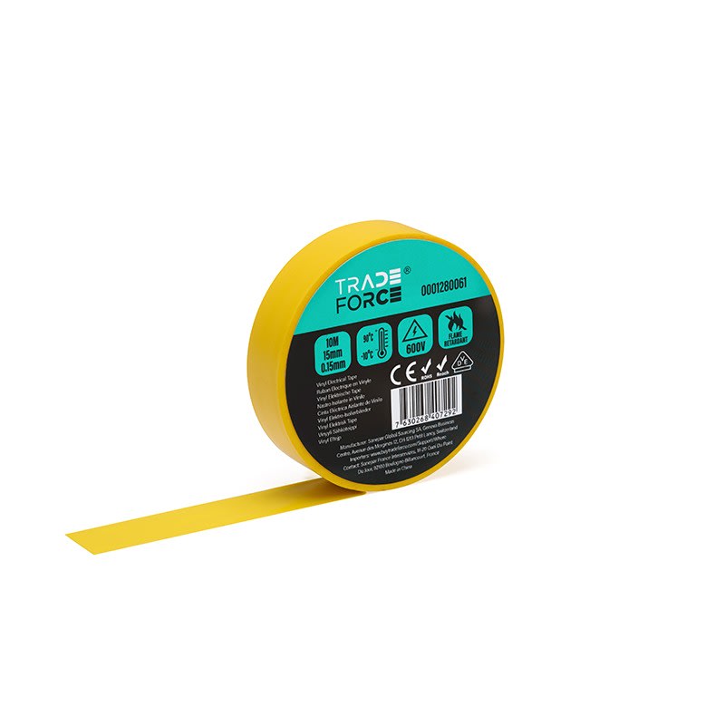 TradeForce - Ruban adhesif PVC jaune, VDE, 600 V, -10C-90C, E:0,15 mm, L: 15 mm, Long 10 m - 0001280061