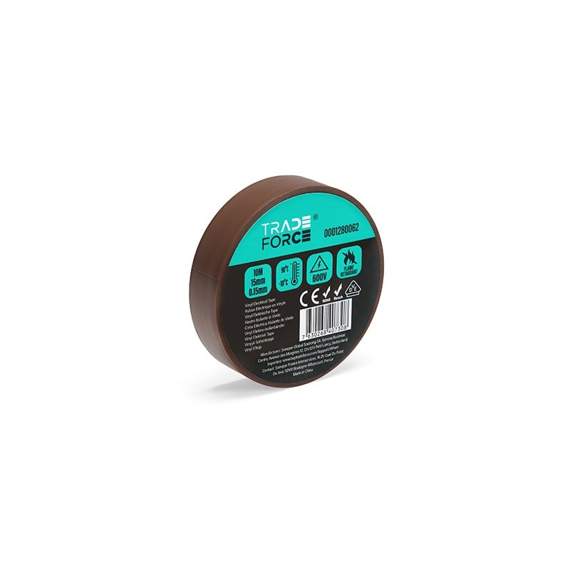 TradeForce - Ruban adhesif PVC marron, VDE, 600V, -10C-90C, E: 0,15 mm, L: 15 mm, Long 10 m - 0001280062