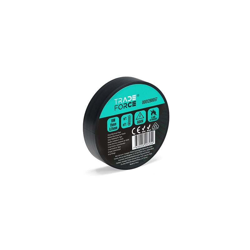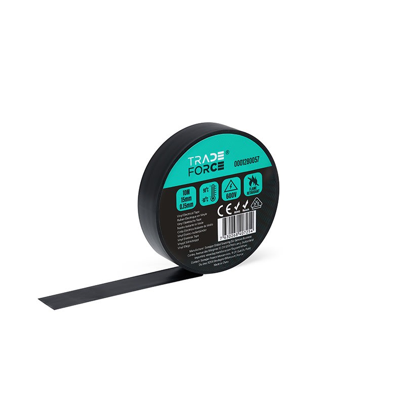 TradeForce - Ruban adhesif PVC noir, VDE, 600 V, -10C-90C, E: 0,15 mm, L : 15 mm, Long 10 m - 0001280057