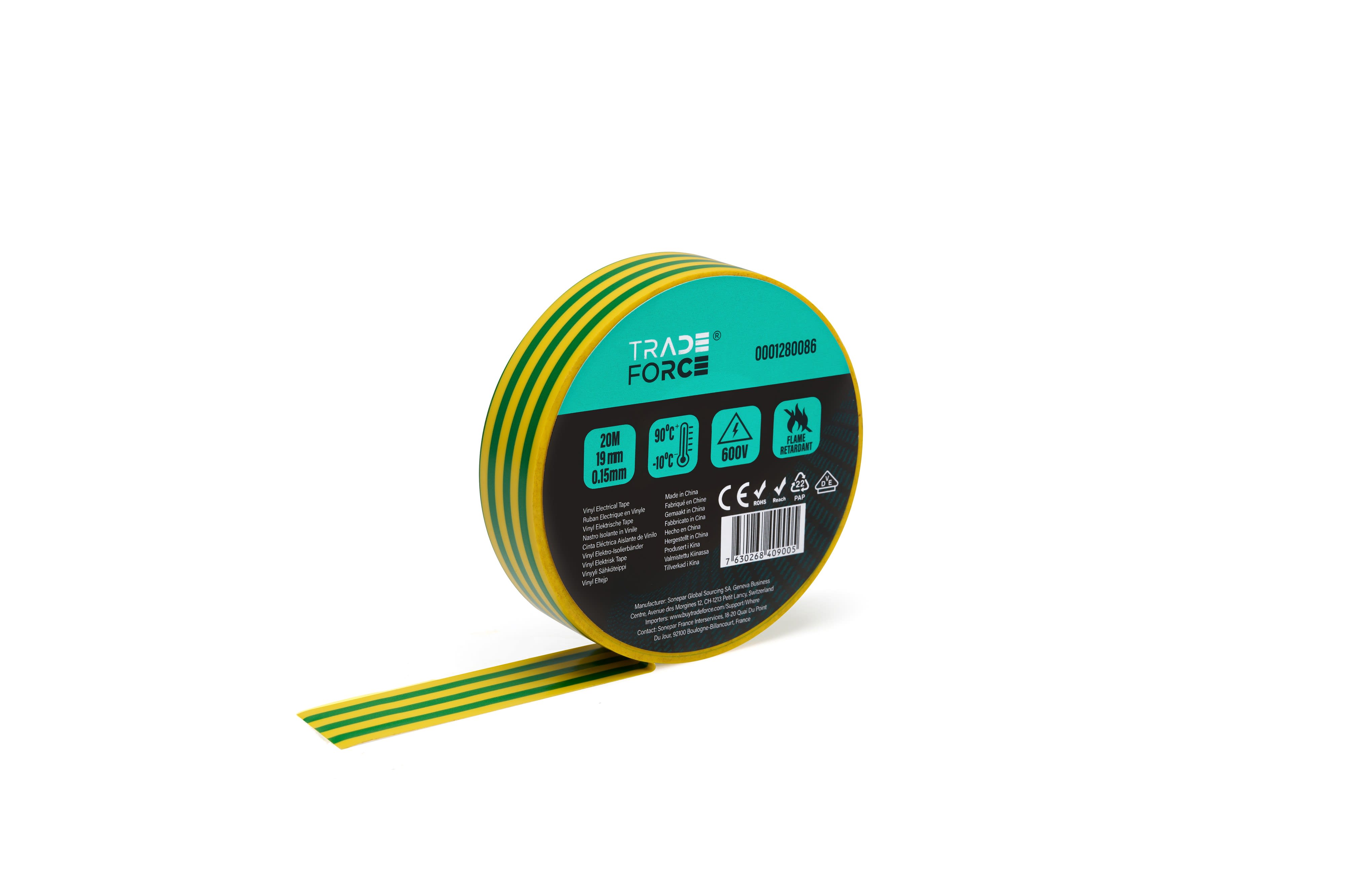 TradeForce - Ruban adhesif PVC V/jaune, VDE, 600 V, -10C-90C, E: 0,15 mm, L : 19 mm, Long 20m - 0001280086