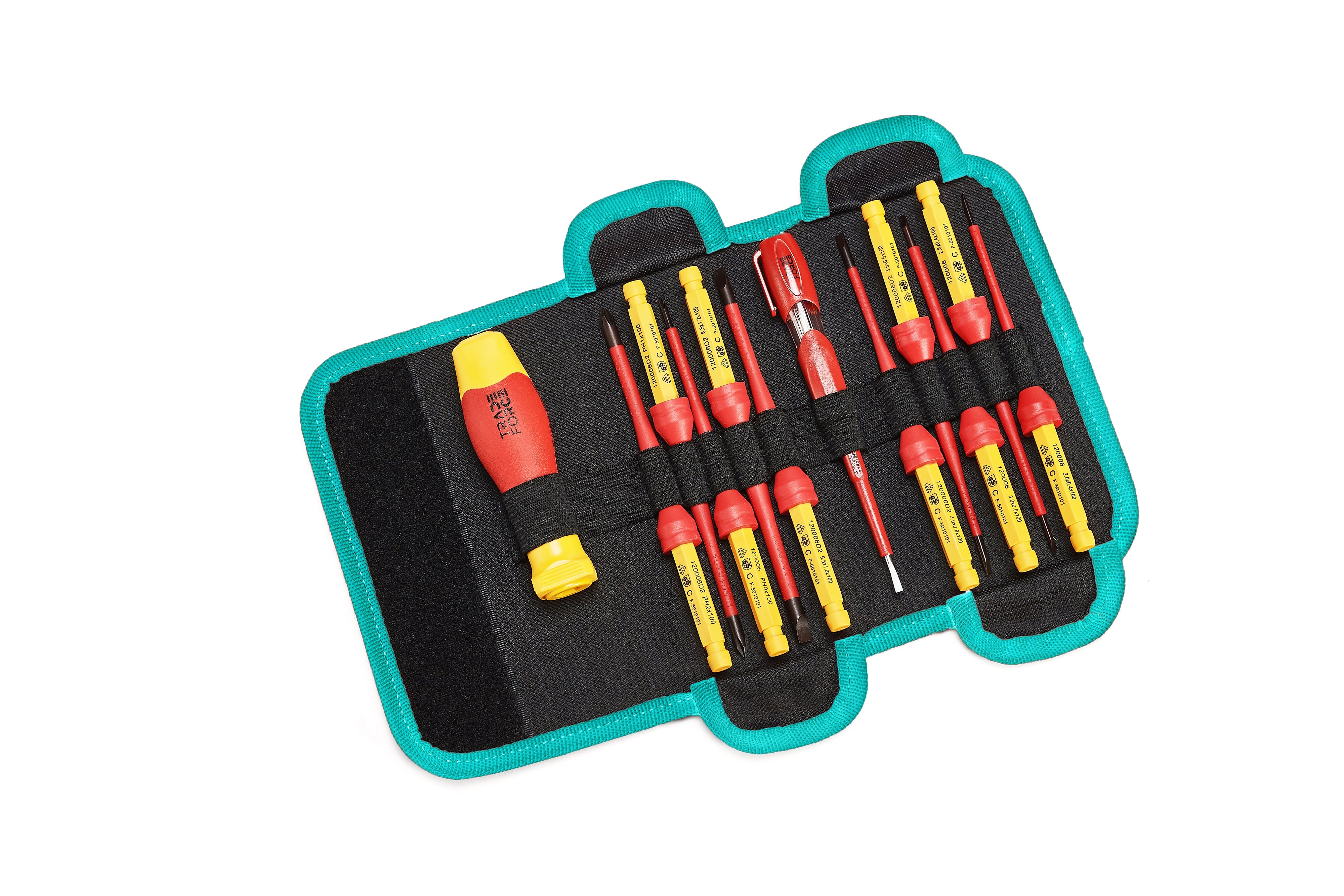 TradeForce - Trousse de 11 tournevis isoles interchangeables. Manche bi-matiere Chrome Vana. - 0118150003