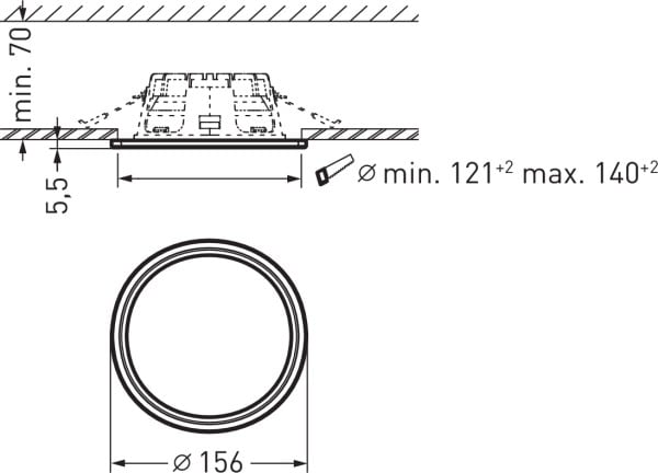 Plaque de rénovation pour l'encastrement dans des ouvertures de plafond déjà existantes et dont les dimensions ne sont pas adaptées. Pour découpes dans le plafond Ø 121 mm - 140 mm. blanc.