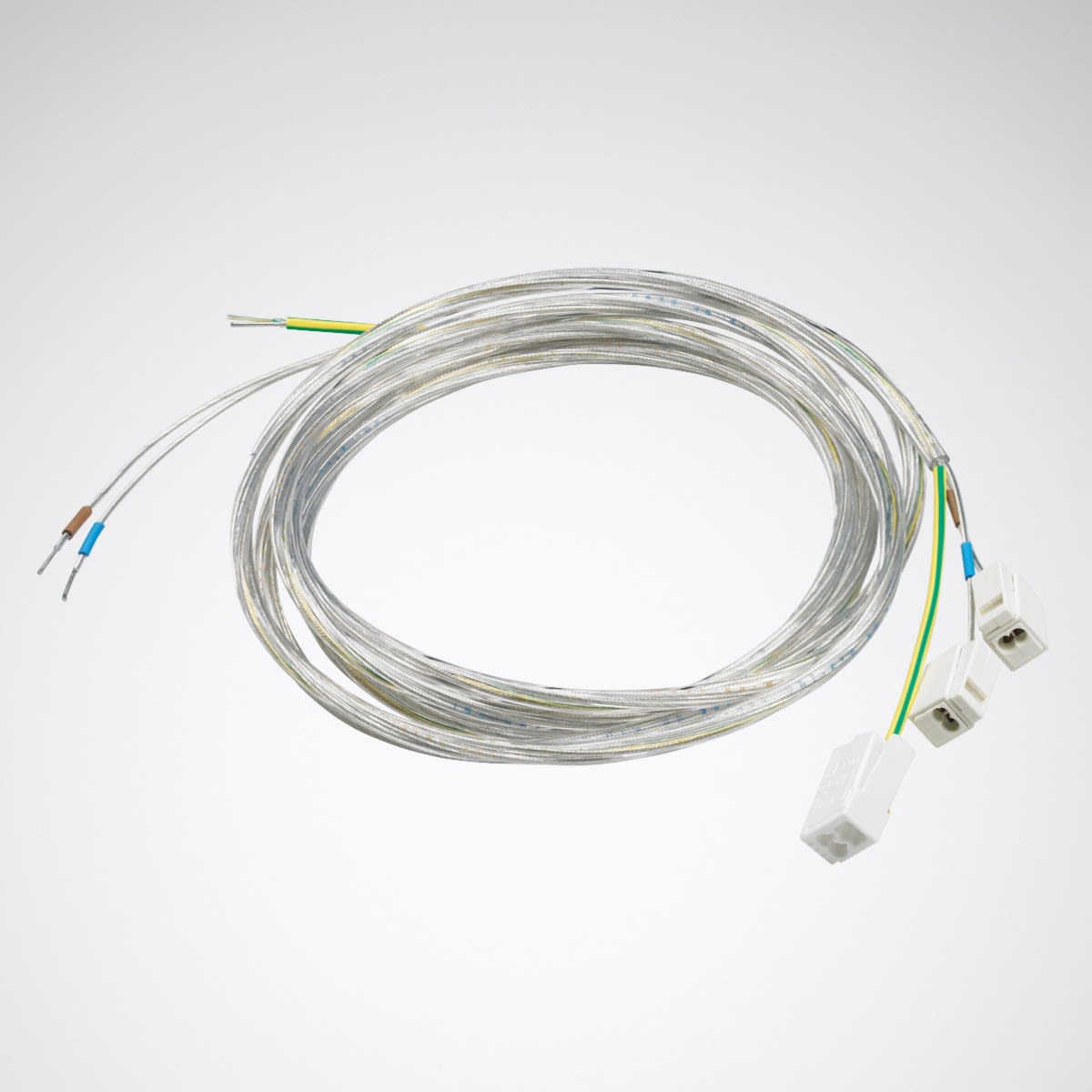 Câble d’alimentation transparent pour luminaires en ligne continue Luceos H. Version 5 conducteurs, Ø 1,5 mm2. Longueur des conducteurs 1000 mm.