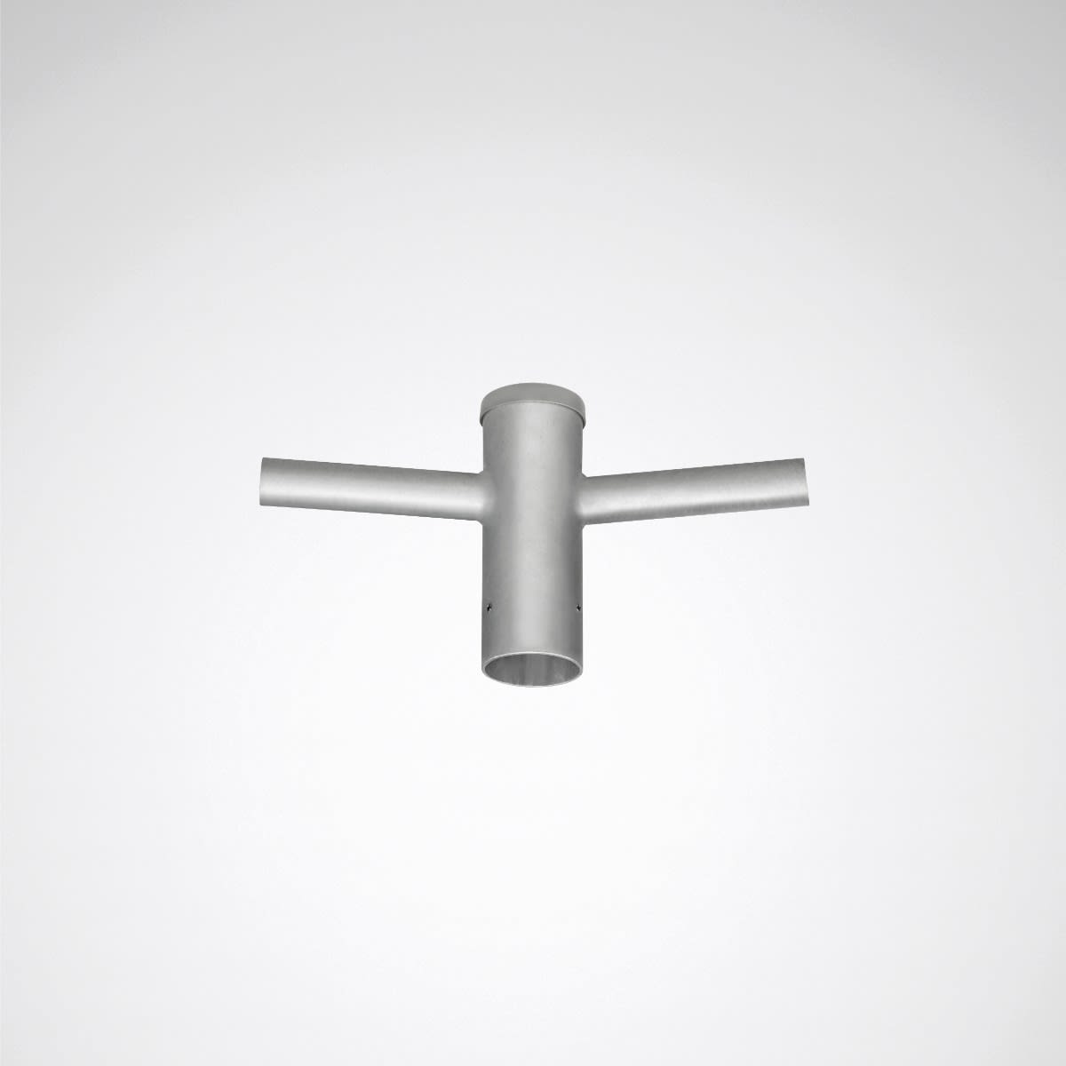 Embout de candélabre en acier soudé, galvanisé à chaud pour le montage de 2 luminaires sur crosse. Pour candélabres avec tête de candélabre Ø 76 mm. Angle d’inclinaison 5°.