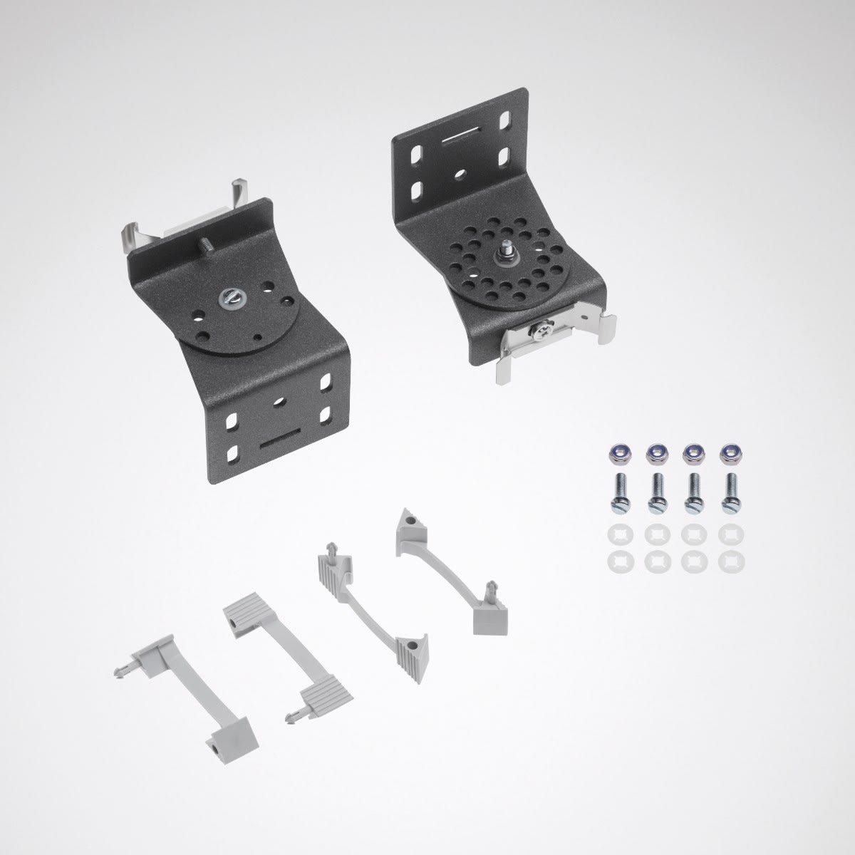 Etriers de montage pivotants pour le montage mural ou au plafond de luminaires LED pour locaux humides.1 jeu = 2 pièces. À utiliser en relation avec les luminaires des séries suivantes: AragonF, DeveoF, OleveonF. Convenant à des locaux humides et à des extérieurs proches de bâtiment. Avec température de surface limitée (DIN EN 60598-2-24, identifiant D).