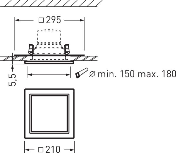Plaque de cache pour couvrir les ouvertures de montage non conformes aux dimensions exactes. Longueur 210 mm Largeur 210 mm.
