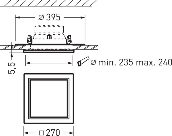 Plaque de cache pour couvrir les ouvertures de montage non conformes aux dimensions exactes. Longueur 270 mm Largeur 270 mm.