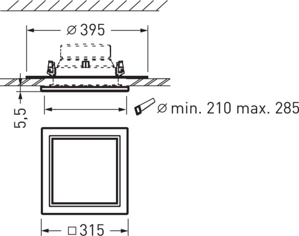 Plaque de rénovation pour l'encastrement dans des ouvertures de plafond déjà existantes et dont les dimensions ne sont pas adaptées. Longueur 315 mm Largeur 315 mm.