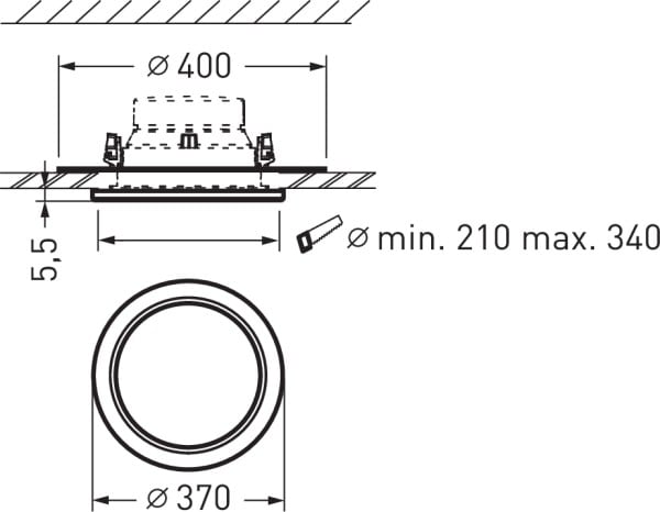 Plaque d'assainissement, pour recouvrir les découpes existantes du plafond en applications d’assainissement. Pour découpes dans le plafond Ø 290 - 340 mm. blanc.
