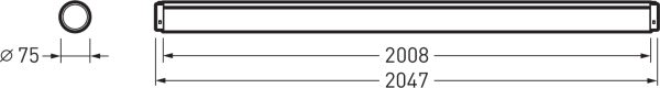 Module fictif pour applications de ligne continue. Avec recouvrement prismatique vers le bas et opale vers le haut, en PMMA résilient aux chocs. Unité d’emballage comprenant 1 pièce. Longueur 2047 mm, Largeur 75 mm, hauteur 75 mm.