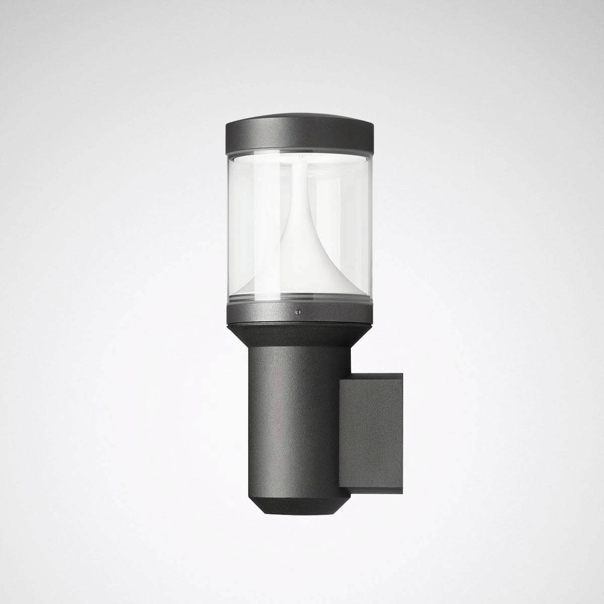 Applique murale LED pour extérieur. En version MLT (Technologie Multi Lens), composé de systèmes de lentilles hautement efficaces, résistants aux UV et aux températures extrêmes, en montage quadruple. À répartition asymétrique extensive des intensités lumineuses. D’autres faisceaux sont disponibles pour une adaptation flexible à des tâches d’éclairage personnalisées client. Le montage ultérieur d'un blindage arrière / latéral est possible en tant qu'accessoire à commander séparément. Flux lumineux du luminaire et couleur de la lumière fixes. Flux lumineux du luminaire 900 lm, puissance raccordée 8 W, rendement lumineux maximale du luminaire 113 lm/W. Teinte de lumière blanc chaud, température de couleur (CCT) 3000 K, indice général de rendu des couleurs (IRC) Ra > 70. Tolérance de localisation chromatique (initialement MacAdam) ≤ 5 SDCM. Autres couleurs de lumière LED disponibles sur demande. Durée de vie assignée moyenne L90 (tq 25 °C) = 50.000 h. La source lumineuse est remplaçable conformément aux exigences d'écoconception (Règlement (UE) 2019/2020). En profilé d'aluminium extrudé. Surface à revêtement anthracite (similaire à DB 703). Diamètre du luminaire 170 mm, hauteur du luminaire 205 mm. Cylindre de fermeture en PMMA à haute résistante aux chocs, clair. Classe électrique (EN 61140) : I, indice de protection (norme EN 60529) : IP65, degré de résistance aux chocs selon la norme CEI 62262 : IK04. Température ambiante admissible (ta): -20 °C à 25 °C. Poids: 5.0 kg. Avec appareillage électronique, commutable L'appareillage est remplaçable conformément aux exigences d'écoconception (Règlement (UE) 2019/2020). Résistance aux pics de tension Mode différentiel / mode commun : 2 kV / 4 kV. Le produit répond aux exigences essentielles des directives européennes applicables et de la loi sur la sécurité des produits et porte le marquage CE.