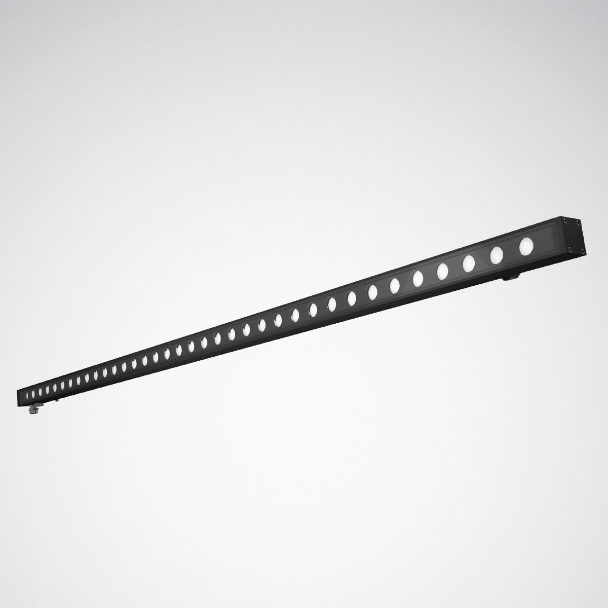 Plafonnier LED pour extérieur. En version MLT (Technologie Multi Lens), composé de systèmes de lentilles hautement efficaces, résistants aux UV et aux températures extrêmes, en montage quadruple. À répartition symétrique extensive des intensités lumineuses. Avec verre de fermeture, clair. Flux lumineux du luminaire et couleur de la lumière fixes. Flux lumineux du luminaire 4000 lm, puissance raccordée 36 W, rendement lumineux maximale du luminaire 111 lm/W. Teinte de lumière blanc chaud, température de couleur (CCT) 3000 K, indice général de rendu des couleurs (IRC) Ra > 80. Tolérance de localisation chromatique (initialement MacAdam) ≤ 3 SDCM. Durée de vie assignée moyenne L80 (tq 25 °C) = 50.000 h. Corps de luminaire en profilé d’aluminium extrudé et en éléments de fonte d’aluminium. Avec verre de fermeture en affleurement et unité LED intégrée. Surface à revêtement anthracite (similaire à DB 703). Dimensions (L x l): 1200 mm x 32 mm, hauteur du luminaire 55 mm. Classe électrique (EN 61140) : III, indice de protection (norme EN 60529) : IP65, degré de résistance aux chocs selon la norme CEI 62262 : IK05. Température ambiante admissible (ta): -20 °C à 25 °C. Poids: 2.0 kg. Le raccordement électrique à l’appareillage séparé s’effectue grâce au câble d’alimentation sortant vers l’extérieur (2000 mm). Luminaire sans appareillage. Appareillage externe à commander séparément sous forme d’accessoires. L'appareillage est remplaçable conformément aux exigences d'écoconception (Règlement (UE) 2019/2020). Résistance aux pics de tension Mode différentiel / mode commun : / . Le produit répond aux exigences essentielles des directives européennes applicables et de la loi sur la sécurité des produits et porte le marquage CE.