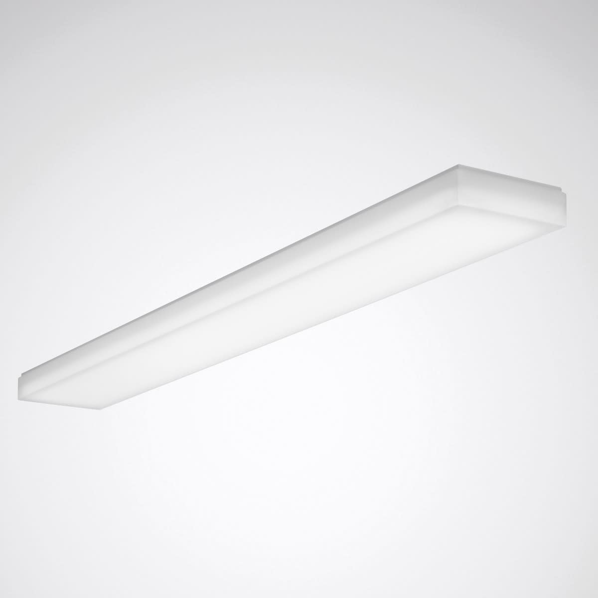 Plafonnier rectangulaire et plat avec un diffuseur opale résistant aux chocs en PMMA. Version avec indice de protection augmenté IP54 sur tout le pourtour. Développé et fabriqué en Allemagne. Convient pour une utilisation dans les entreprises certifiées HACCP, IFS et/ou BRC Global Standard Food. Avec température de surface limitée (DIN EN 60598-2-24, identifiant D). Le matériau et la structure du diffuseur de recouvrement assurent un éclairage uniforme et sans ombre de la surface du luminaire, facile à nettoyer. Avec une répartition lambertienne des intensités lumineuses. Flux lumineux du luminaire et couleur de la lumière fixes. Flux lumineux du luminaire 5000 lm, puissance raccordée 39,00 W, Teinte de lumière blanc neutre, température de couleur (CCT) 4000 K, indice général de rendu des couleurs (IRC) Ra > 80. Tolérance de localisation chromatique (initialement MacAdam) ≤ 3 SDCM. Durée de vie assignée moyenne L80(tq 25 °C) = 100.000 h. La source lumineuse est remplaçable conformément aux exigences d'écoconception (Règlement (UE) 2019/2020). L'échange s'effectue sans outil, la source lumineuse de rechange peut être obtenue comme pièce de rechange. Corps de luminaire en tôle d’acier. Surface revêtue de blanc (RAL 9016). Dimensions (L x l x H) : 1578 mm x 198 mm x 68 mm. Classe électrique (EN 61140) : I, indice de protection (norme EN 60529) : IP54, degré de résistance aux chocs selon la norme CEI 62262 : IK06, température d’essai au fil incandescent selon la norme CEI 60695-2-11 : 650 °C. Poids: 4.6 kg. Avec driver. L'appareillage est remplaçable conformément aux exigences d'écoconception (Règlement (UE) 2019/2020). Le produit répond aux exigences essentielles des directives européennes applicables et de la loi sur la sécurité des produits et porte le marquage CE.