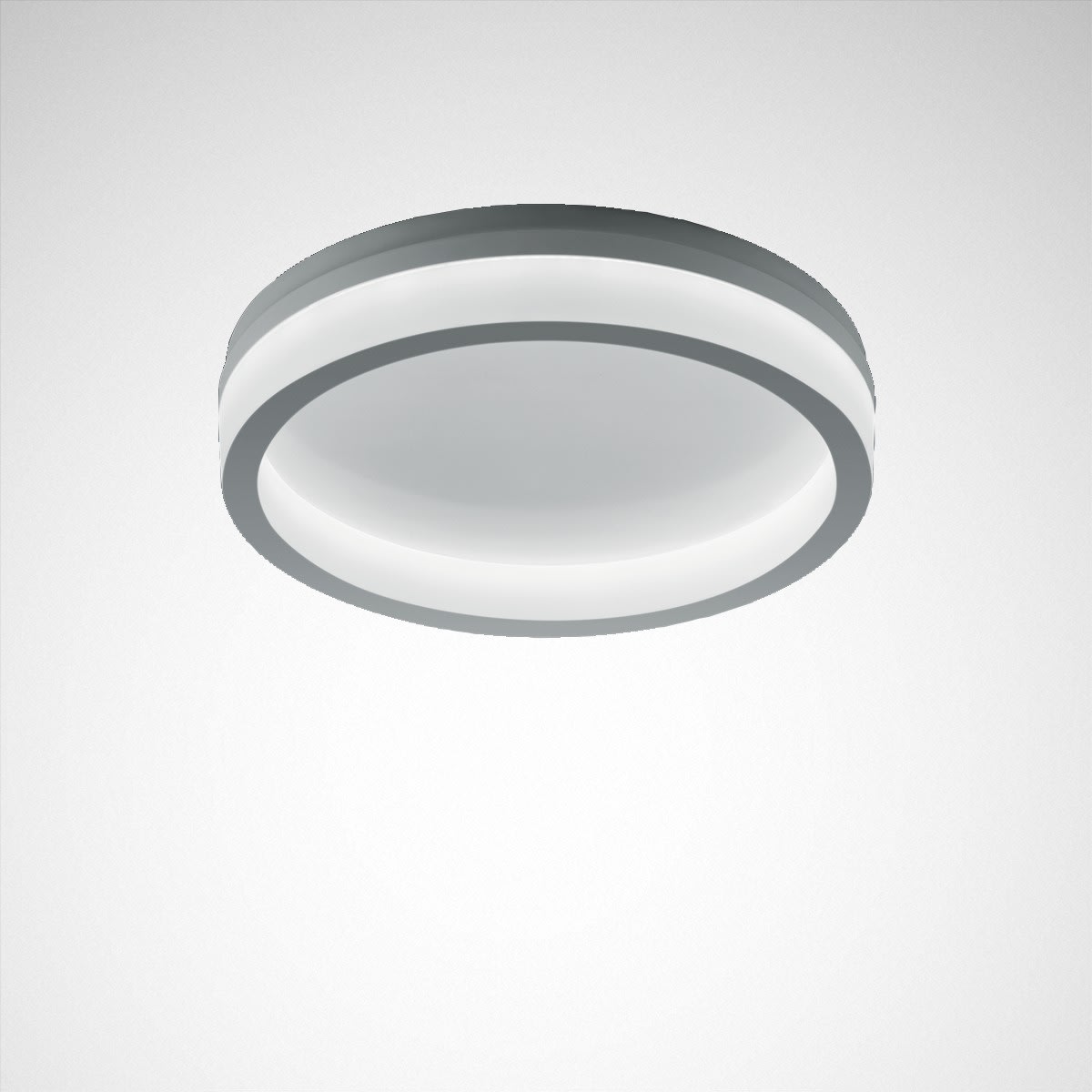 Applique murale et plafonnier LED exclusif avec un élément lumineux de forme circulaire. À répartition des intensités lumineuses principalement de type direct-indirect. PMMA-Vasque circulaire à contours plans marqués et surface finement structurée. Avec une répartition lambertienne des intensités lumineuses. Des boîtiers d'encastrement optionnels deviennent en tant que réflecteurs secondaires supplémentaires tout autour une partie photométriquement efficace des luminaires. Flux lumineux du luminaire et couleur de la lumière fixes. Flux lumineux du luminaire 2700 lm, puissance raccordée 27 W, rendement lumineux maximale du luminaire 100 lm/W. Teinte de lumière blanc chaud, température de couleur (CCT) 3000 K, indice général de rendu des couleurs (IRC) Ra > 80. Tolérance de localisation chromatique (initialement MacAdam) ≤ 3 SDCM. Durée de vie assignée moyenne L80 (tq 25 °C) = 70.000 h. La source lumineuse est remplaçable conformément aux exigences d'écoconception (Règlement (UE) 2019/2020). Corps de luminaire en tôle d’acier. Surface à revêtement blanc (similaire à RAL 9016). Diamètre du luminaire Ø 403 mm, hauteur du luminaire 68 mm. Classe électrique (EN 61140) : I, indice de protection (norme EN 60529) : IP40, degré de résistance aux chocs selon la norme CEI 62262 : IK05, température d’essai au fil incandescent selon la norme CEI 60695-2-11 : 650 °C. Température ambiante admissible (ta): -20 °C à 25 °C. Poids: 3.2 kg. Avec driver, dimmable (DALI). Appareillage conf. au standard DALI 2 (EN 62386). Possibilité de commutation et de gradation du luminaire au moyen de la fonction bouton-poussoir via les bornes de commande DALI (TouchDim). L'appareillage est remplaçable conformément aux exigences d'écoconception (Règlement (UE) 2019/2020). Ce luminaire qui est prêt au monitoring (MOR) fournit des données d’exploitation permettant une surveillance ou une maintenance prédictive, il est donc compatible avec les services de TRILUX Monitoring Services. Le produit répond aux exigences essentielles des directives européennes applicables et de la loi sur la sécurité des produits et porte le marquage CE. Le luminaire est en outre certifié ENEC par un organisme de contrôle indépendant.