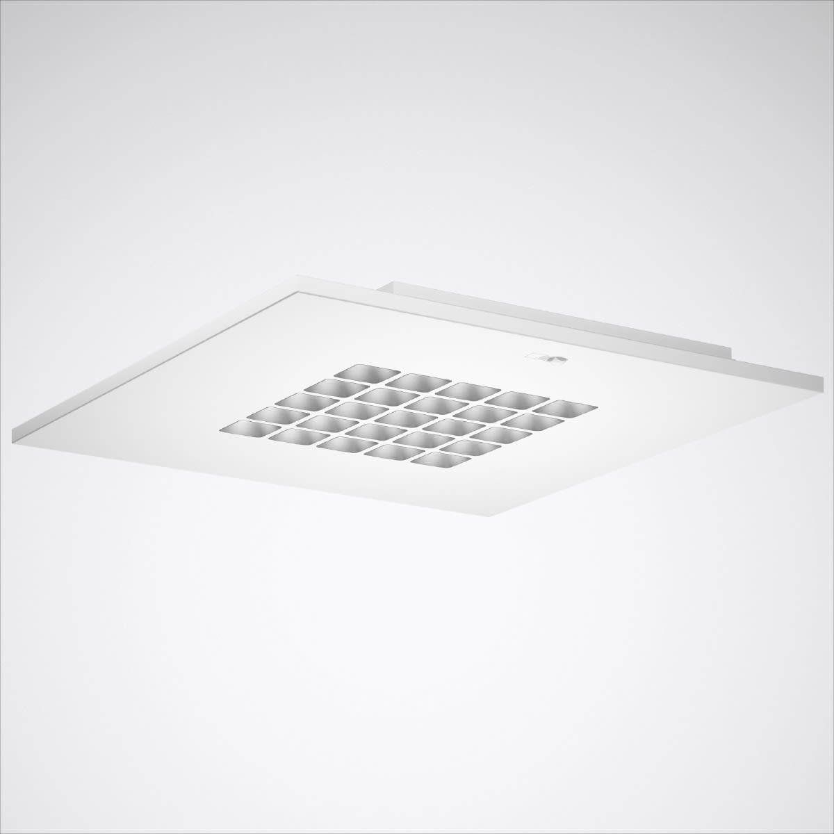 Plafonnier encastré LED, de forme carrée, à éléments lumineux en systèmes de lentilles et éléments anti-éblouissement cubiques très efficaces. Version M73 (600 mm x 600 mm). Avec dispositif de commande LiveLink WiFi RC et capteur LiveLink. À dispositif de commande LiveLink WiFi et capteur LiveLink intégrés pour le réglage en fonction de la lumière du jour et la détection de présence ainsi qu’avec module WLAN pour une mise en service et une commande sures (cryptage WPA2). Capteur LiveLink MSensor G3 PIR 5DPI pour un réglage en fonction de la lumière du jour et pour la détection de présence. Réglage de lumière constante avec fonction de coupure si la lumière du jour est suffisante. Le système optique avec une combinaison précisément adaptée de lentilles LED et d'éléments anti-éblouissants offre un très grand confort visuel accompagné d'une performance d'éclairage très élevée. À répartition symétrique limitée et extensive des intensités lumineuses. angle d’éclairage 79°. Taux d'éblouissement selon classification UGR (EN 12464-1) < 19. Compatible avec les écrans informatiques selon la norme EN 12464-1 grâce à des luminosités réduites L ≤ 3 000 cd/2 pour des angles d’éclairage supérieurs à 65 °, de manière omnidirectionnelle. Flux lumineux du luminaire et couleur de la lumière fixes. 25 éléments lumineux, en version carrée (5 x 5). Flux lumineux du luminaire 4200 lm, puissance raccordée 27 W, rendement lumineux maximale du luminaire 156 lm/W. Teinte de lumière blanc neutre, température de couleur (CCT) 4000 K, indice général de rendu des couleurs (IRC) Ra > 80. Tolérance de localisation chromatique (initialement MacAdam) ≤ 3 SDCM. Durée de vie assignée moyenne L80 (tq 25 °C) = 100.000 h., Durée de vie assignée moyenne L90 (tq 25 °C) = 50.000 h. La source lumineuse est remplaçable conformément aux exigences d'écoconception (Règlement (UE) 2019/2020). Corps de luminaire en tôle d’acier. Surface à revêtement blanc (similaire à RAL 9016). Cubes anti-éblouissement, en gris argent, à surface finement structurée (RAL 7001). Sur demande, les cubes anti-éblouissement peuvent être réalisés dans d’autres couleurs RAL. La couleur des cubes anti-éblouissement n’a aucun impact sur les caractéristiques photométriques du luminaire. Classe électrique (EN 61140) : I, indice de protection (norme EN 60529) : IP20, degré de résistance aux chocs selon la norme CEI 62262 : IK03, température d’essai au fil incandescent selon la norme CEI 60695-2-11 : 650 °C. Température ambiante admissible (ta): 25 °C . Poids: 5.4 kg. Raccordement rapide à protection contre l’inversion de polarité, à repiquage secteur jusqu’à Ø 2,5 mm2. Raccordement du ballast au luminaire au moyen d’un connecteur (Plug-and-Play). Le concept d’emballage du luminaire permet de retirer séparément l’appareillage pour son prémontage, les autres composants du luminaire restant protégés jusqu’à leur montage final. Avec driver externe dimmable (DALI). Appareillage conf. au standard DALI 2 (EN 62386). Possibilité de commutation et de gradation du luminaire au moyen de la fonction bouton-poussoir via les bornes de commande DALI (TouchDim). L'appareillage est remplaçable conformément aux exigences d'écoconception (Règlement (UE) 2019/2020).