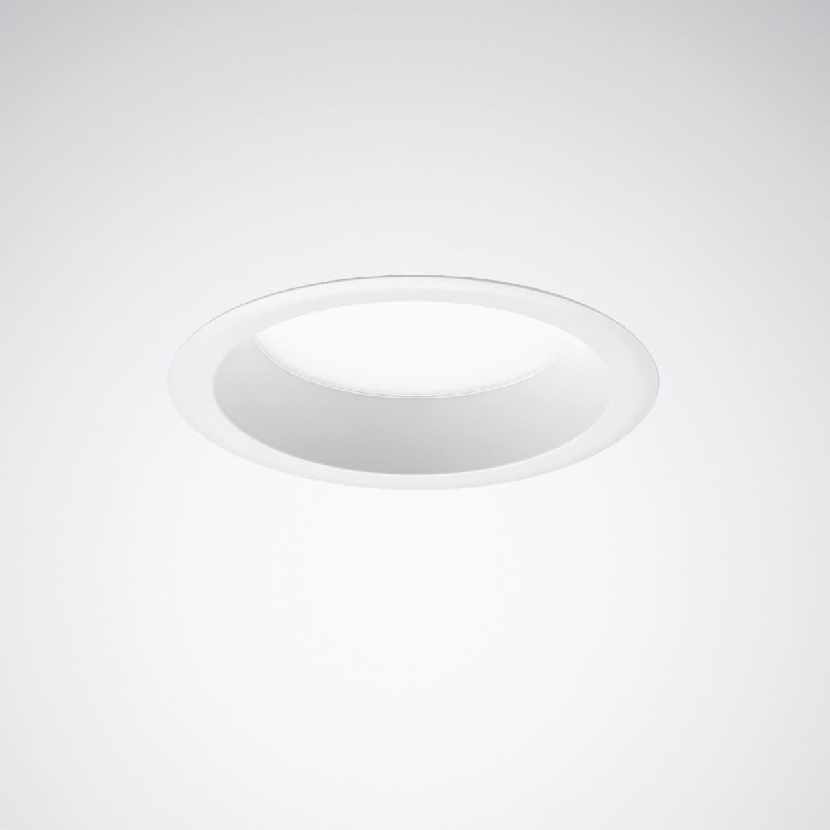 Spot encastré à LED. Découpe dans le plafond Ø 180 - 195 mm. Profondeur d’encastrement ≥ 97 mm. Avec diffuseur fermé en PMMA, à prismes. Réflecteur, laqué blanc. À répartition symétrique intensive des intensités lumineuses. Flux lumineux du luminaire et couleur de la lumière fixes. Flux lumineux du luminaire 1200 lm, puissance raccordée 12.5 W, rendement lumineux maximale du luminaire 96 lm/W. Teinte de lumière blanc chaud, température de couleur (CCT) 3000 K, indice général de rendu des couleurs (IRC) Ra > 80. Tolérance de localisation chromatique (initialement MacAdam) ≤ 4 SDCM. Durée de vie assignée moyenne L80 (tq 25 °C) = 35.000 h. La source lumineuse est remplaçable conformément aux exigences d'écoconception (Règlement (UE) 2019/2020). Anneau de plafond en tôle d'acier. Surface à revêtement blanc (similaire à RAL 9016). Dimensions extérieures de la collerette Ø 210 mm, hauteur du luminaire 95 mm. Classe électrique (EN 61140) : II, indice de protection (norme EN 60529) : IP20, Indice de protection par le dessous : IP44, degré de résistance aux chocs selon la norme CEI 62262 : IK02, température d’essai au fil incandescent selon la norme CEI 60695-2-11 : 650 °C. Température ambiante admissible (ta): 25 °C Poids: 0.5 kg. Avec driver. L'appareillage est remplaçable conformément aux exigences d'écoconception (Règlement (UE) 2019/2020). Appareillage séparé à dispositif anti-traction intégré. Le produit répond aux exigences essentielles des directives européennes applicables et de la loi sur la sécurité des produits et porte le marquage CE. Le luminaire est en outre certifié ENEC par un organisme de contrôle indépendant.