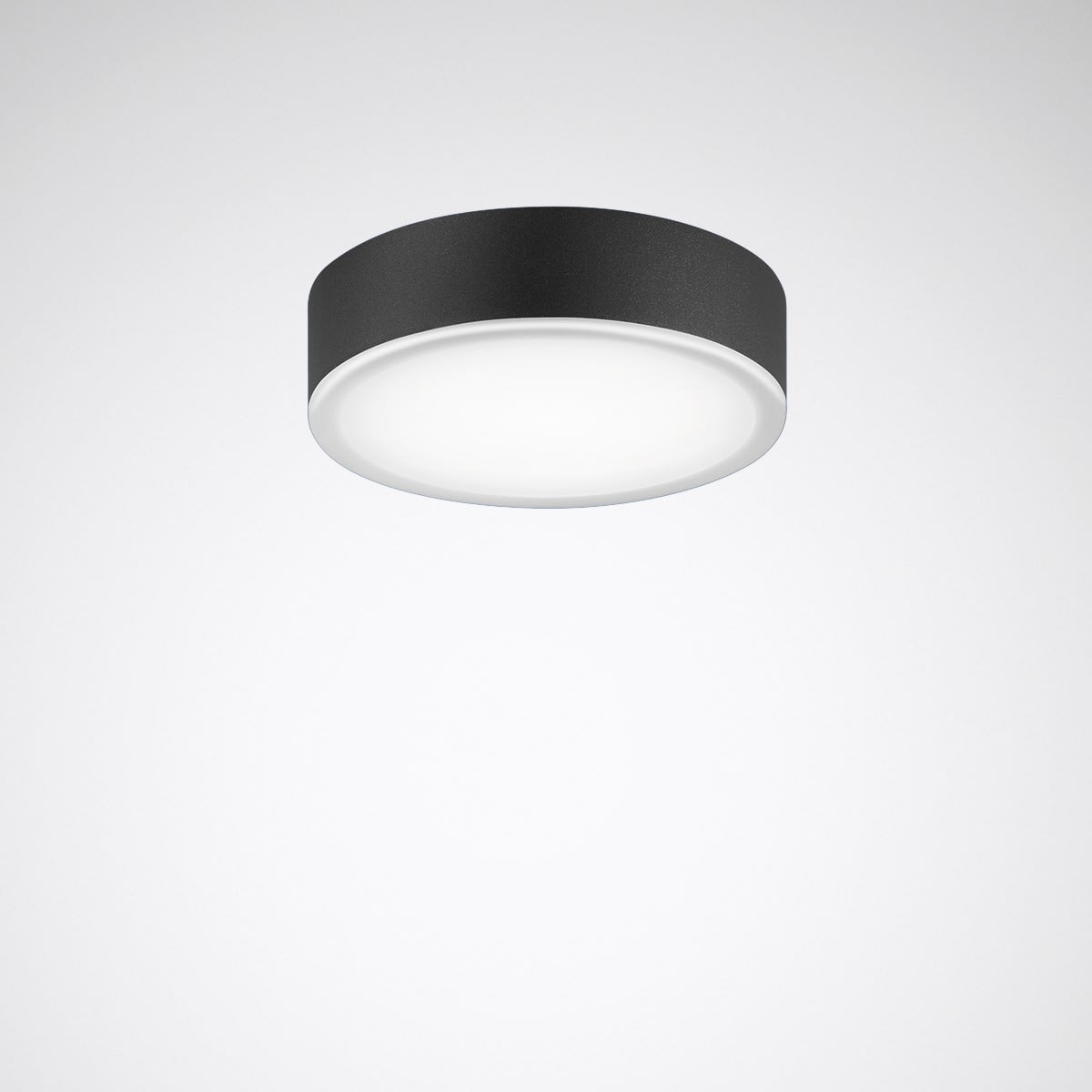 Downlight apparent rond, Hauteur de montage 60 mm. Pour montage mural et au plafond. Plaque de recouvrement en PMMA translucide. Avec une répartition lambertienne des intensités lumineuses. angle d’éclairage 104°. Effet lumineux harmonieux grâce à une sortie de lumière uniformément éclairée. Flux lumineux du luminaire et couleur de la lumière fixes. Flux lumineux du luminaire 1200 lm, puissance raccordée 9 W, rendement lumineux maximale du luminaire 133 lm/W. Teinte de lumière blanc chaud, température de couleur (CCT) 3000 K, indice général de rendu des couleurs (IRC) Ra > 80. Tolérance de localisation chromatique (initialement MacAdam) ≤ 3 SDCM. Durée de vie assignée moyenne L80 (tq 25 °C) = 70.000 h. La source lumineuse est remplaçable conformément aux exigences d'écoconception (Règlement (UE) 2019/2020). Corps du luminaire en fonte d’aluminium. Surface à revêtement anthracite (similaire à DB 703). Dimensions extérieures de la collerette Ø 234 mm, hauteur du luminaire 60 mm. Classe électrique (EN 61140) : I, indice de protection (norme EN 60529) : IP40, degré de résistance aux chocs selon la norme CEI 62262 : IK06, température d’essai au fil incandescent selon la norme CEI 60695-2-11 : 650 °C. Température ambiante admissible (ta): -20 °C à 25 °C. Poids: 1.6 kg. Avec bornier de raccordement jusqu’à 2,5 mm, dispositif antitraction et repiquage secteur. Avec driver, dimmable (DALI). Appareillage conf. au standard DALI 2 (EN 62386). L'appareillage est remplaçable conformément aux exigences d'écoconception (Règlement (UE) 2019/2020). Ce luminaire qui est prêt au monitoring (MOR) fournit des données d’exploitation permettant une surveillance ou une maintenance prédictive, il est donc compatible avec les services de TRILUX Monitoring Services. Le produit répond aux exigences essentielles des directives européennes applicables et de la loi sur la sécurité des produits et porte le marquage CE. Le luminaire est en outre certifié ENEC par un organisme de contrôle indépendant.