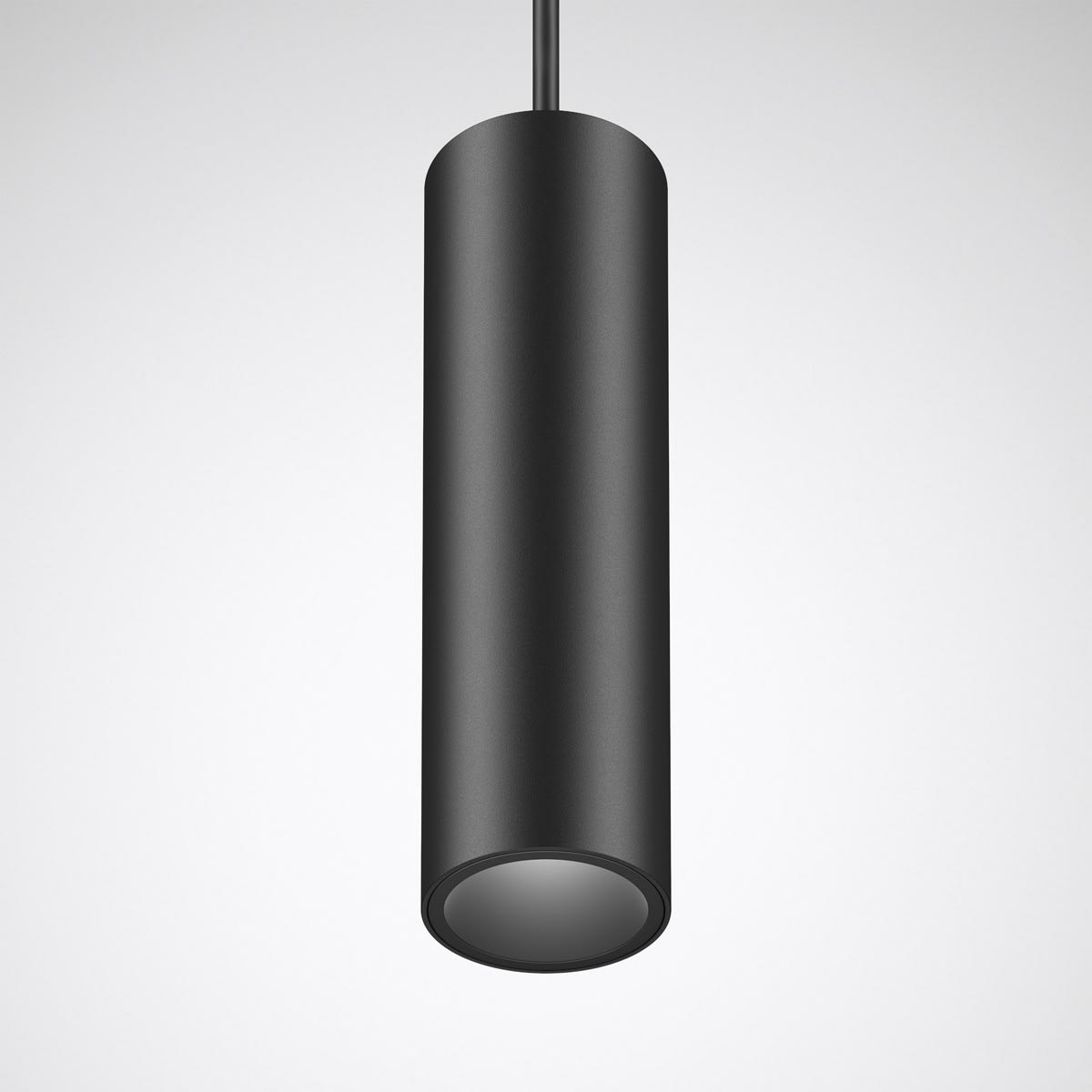 Downlight LED compact au format rond. Downlight pour un montage suspendu. Convient pour une utilisation dans les entreprises certifiées HACCP, IFS et/ou BRC Global Standard Food. Avec réflecteur en plastique, revêtement noir. Le système optique avec une combinaison précisément adaptée de lentilles LED et d'éléments anti-éblouissants offre un très grand confort visuel accompagné d'une performance d'éclairage très élevée. Caractéristique du faisceau Flood. Compatible avec les écrans informatiques selon la norme EN 12464-1 grâce à des luminosités réduites L ≤ 3 000 cd/2 pour des angles d’éclairage supérieurs à 65 °, de manière omnidirectionnelle. Guidage de la lumière via une technologie de collimateurs/lentilles. Flux lumineux du luminaire et couleur de la lumière fixes. Flux lumineux du luminaire 800 lm, puissance raccordée 11 W, rendement lumineux maximale du luminaire 73 lm/W. Teinte de lumière blanc chaud, température de couleur (CCT) 3000 K, indice général de rendu des couleurs (IRC) Ra > 90. Tolérance de localisation chromatique (initialement MacAdam) ≤ 3 SDCM. Durée de vie assignée moyenne L80 (tq 25 °C) = 100.000 h., Durée de vie assignée moyenne L90 (tq 25 °C) = 50.000 h. La source lumineuse est remplaçable conformément aux exigences d'écoconception (Règlement (UE) 2019/2020). Boîtier et corps de refroidissement en aluminium moulé sous pression. Surface à revêtement noir (similaire à RAL 9005). Diamètre du luminaire Ø 64 mm, hauteur du luminaire 206 mm Classe électrique (EN 61140) : I, indice de protection (norme EN 60529) : IP20, degré de résistance aux chocs selon la norme CEI 62262 : IK06, température d’essai au fil incandescent selon la norme CEI 60695-2-11 : 850 °C, Indice de protection par le dessous IP44. Température ambiante admissible (ta): -20 °C à 25 °C. Poids: 0.9 kg. Avec appareillage électronique, à gradation numérique (DALI). L'appareillage est remplaçable conformément aux exigences d'écoconception (Règlement (UE) 2019/2020). Le produit répond aux exigences essentielles des directives européennes applicables et de la loi sur la sécurité des produits et porte le marquage CE.