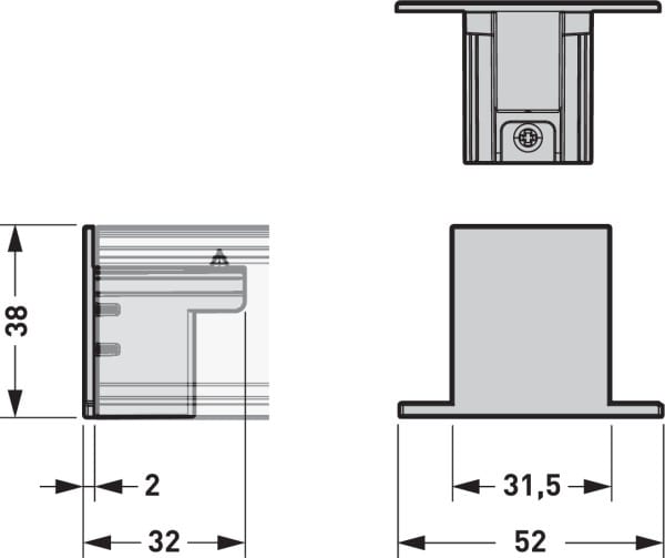 Embout pour le recouvrement frontal du rail conducteur triphasé encastré. À utiliser en combinaison avec système de rails conducteurs triphasé (DALI) - Rail.. Couleur noir (similaire à RAL 9005). Dimensions (L x l x H) : 64 mm x 38 mm x 52 mm