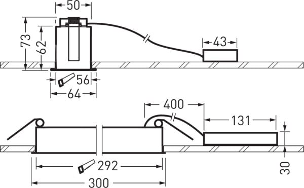 Luminaire individuel du système de canaux lumineux pour une mise en scène architecturale de l’éclairage. Ce luminaire fait partie d’une gamme de luminaires encastrés, de plafonniers et de luminaires suspendus, dont l’aspect est harmonisé. Tous les accessoires indispensables au système (étriers de montage/étriers pivotants et embouts frontaux) sont inclus dans la livraison. Pour des informations détaillées sur les dimensions de montage, nous vous renvoyons aux dernières instructions de montage. À réflecteur en aluminium brillant et système LED au découplage latéral. Wallwasher à répartition asymétrique des intensités lumineuses. Flux lumineux du luminaire et couleur de la lumière fixes. Flux lumineux du luminaire 542 lm, puissance raccordée 10 W, rendement lumineux maximale du luminaire 54 lm/W. Teinte de lumière blanc chaud, température de couleur (CCT) 3000 K, indice général de rendu des couleurs (IRC) Ra > 80. Tolérance de localisation chromatique (initialement MacAdam) ≤ 3 SDCM. Durée de vie assignée moyenne L90 (tq 25 °C) = 50.000 h., Durée de vie assignée moyenne L80 (tq 25 °C) = 100.000 h. La source lumineuse est remplaçable conformément aux exigences d'écoconception (Règlement (UE) 2019/2020). Éléments de canal en profilé extrudé d’aluminium, embouts frontaux en plastique (PMMA). Surface à revêtement noir (similaire à RAL 9005). Dimensions (L x l): 300 mm x 64 mm, hauteur du luminaire 62 mm. Classe électrique (EN 61140) : II, indice de protection (norme EN 60529) : IP20, degré de résistance aux chocs selon la norme CEI 62262 : IK03, température d’essai au fil incandescent selon la norme CEI 60695-2-11 : 650 °C. Température ambiante admissible (ta): 25 °C . Poids: 1.6 kg. Le raccordement au réseau s'effectue au moyen d'une borne à 5 pôles jusqu'à 1,5 mm2. Avec appareillage électronique, à gradation numérique (DALI). Appareillage conf. au standard DALI 2 (EN 62386). L'appareillage est remplaçable conformément aux exigences d'écoconception (Règlement (UE) 2019/2020). Ce luminaire qui est prêt au monitoring (MOR) fournit des données d’exploitation permettant une surveillance ou une maintenance prédictive, il est donc compatible avec les services de TRILUX Monitoring Services. Le produit répond aux exigences essentielles des directives européennes applicables et de la loi sur la sécurité des produits et porte le marquage CE.