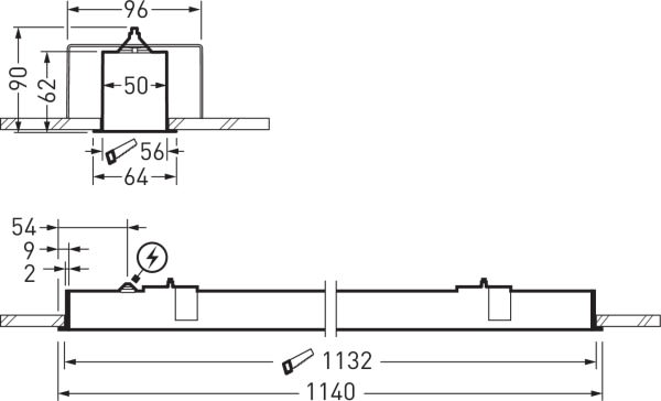 Luminaire individuel du système de canaux lumineux pour une mise en scène architecturale de l’éclairage. Ce luminaire fait partie d’une gamme de luminaires encastrés, de plafonniers et de luminaires suspendus, dont l’aspect est harmonisé. Tous les accessoires indispensables au système (étriers de montage/étriers pivotants et embouts frontaux) sont inclus dans la livraison. Pour des informations détaillées sur les dimensions de montage, nous vous renvoyons aux dernières instructions de montage. Le diffuseur en PMMA opale, finement structuré et à éclairage homogène est monté en affleurement. Avec une répartition lambertienne des intensités lumineuses. Flux lumineux du luminaire et couleur de la lumière fixes. Flux lumineux du luminaire 2666 lm, puissance raccordée 27 W, rendement lumineux maximale du luminaire 99 lm/W. Teinte de lumière blanc neutre, température de couleur (CCT) 4000 K, indice général de rendu des couleurs (IRC) Ra > 80. Tolérance de localisation chromatique (initialement MacAdam) ≤ 3 SDCM. Durée de vie assignée moyenne L90 (tq 25 °C) = 50.000 h., Durée de vie assignée moyenne L80 (tq 25 °C) = 100.000 h. La source lumineuse est remplaçable conformément aux exigences d'écoconception (Règlement (UE) 2019/2020). Éléments de canal en profilé extrudé d’aluminium, embouts frontaux en plastique (PMMA). Surface à revêtement blanc (similaire à RAL 9016). Dimensions (L x l): 1140 mm x 64 mm, hauteur du luminaire 62 mm. Classe électrique (EN 61140) : I, indice de protection (norme EN 60529) : IP20, degré de résistance aux chocs selon la norme CEI 62262 : IK03, température d’essai au fil incandescent selon la norme CEI 60695-2-11 : 650 °C. Température ambiante admissible (ta): 25 °C . Poids: 3.3 kg. Le raccordement au réseau s'effectue au moyen d'une borne à 5 pôles jusqu'à 1,5 mm2. Avec driver. L'appareillage est remplaçable conformément aux exigences d'écoconception (Règlement (UE) 2019/2020). Le produit répond aux exigences essentielles des directives européennes applicables et de la loi sur la sécurité des produits et porte le marquage CE.