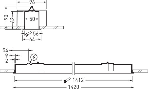 Luminaire individuel du système de canaux lumineux pour une mise en scène architecturale de l’éclairage. Ce luminaire fait partie d’une gamme de luminaires encastrés, de plafonniers et de luminaires suspendus, dont l’aspect est harmonisé. Tous les accessoires indispensables au système (étriers de montage/étriers pivotants et embouts frontaux) sont inclus dans la livraison. Pour des informations détaillées sur les dimensions de montage, nous vous renvoyons aux dernières instructions de montage. Le diffuseur en PMMA opale, finement structuré et à éclairage homogène est monté en affleurement. Avec une répartition lambertienne des intensités lumineuses. Flux lumineux du luminaire et couleur de la lumière fixes. Flux lumineux du luminaire 3332 lm, puissance raccordée 33 W, rendement lumineux maximale du luminaire 101 lm/W. Teinte de lumière blanc neutre, température de couleur (CCT) 4000 K, indice général de rendu des couleurs (IRC) Ra > 80. Tolérance de localisation chromatique (initialement MacAdam) ≤ 3 SDCM. Durée de vie assignée moyenne L90 (tq 25 °C) = 50.000 h., Durée de vie assignée moyenne L80 (tq 25 °C) = 100.000 h. La source lumineuse est remplaçable conformément aux exigences d'écoconception (Règlement (UE) 2019/2020). Éléments de canal en profilé extrudé d’aluminium, embouts frontaux en plastique (PMMA). Surface à revêtement blanc (similaire à RAL 9016). Dimensions (L x l): 1420 mm x 64 mm, hauteur du luminaire 62 mm. Classe électrique (EN 61140) : I, indice de protection (norme EN 60529) : IP20, degré de résistance aux chocs selon la norme CEI 62262 : IK03, température d’essai au fil incandescent selon la norme CEI 60695-2-11 : 650 °C. Température ambiante admissible (ta): 25 °C . Poids: 3.6 kg. Le raccordement au réseau s'effectue au moyen d'une borne à 5 pôles jusqu'à 1,5 mm2. Avec driver. L'appareillage est remplaçable conformément aux exigences d'écoconception (Règlement (UE) 2019/2020). Le produit répond aux exigences essentielles des directives européennes applicables et de la loi sur la sécurité des produits et porte le marquage CE.