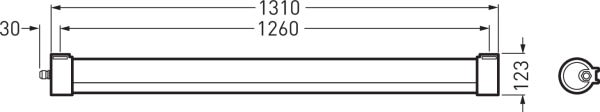 Luminaire tubulaire LED en PMMA résistant aux chocs. Convient pour une utilisation dans les entreprises certifiées HACCP, IFS et/ou BRC Global Standard Food. Plafonnier pour les locaux humides, les zones extérieures couvertes et non couvertes. Ce luminaire est adapté à une utilisation dans des atmosphères chlorées (piscines, ...). Avec température de surface limitée (DIN EN 60598-2-24, identifiant D). Clips de fixation pour le montage sur des surfaces solides, inclus dans la livraison. Une fixation au moyen de colliers de serrage est nécessaire au montage sur des surfaces mobiles ou vibrantes. Les accessoires sont à commander séparément. À répartition symétrique extensive des intensités lumineuses. Flux lumineux du luminaire et couleur de la lumière fixes. Flux lumineux du luminaire 6700 lm, puissance raccordée 45 W, rendement lumineux maximale du luminaire 149 lm/W. Teinte de lumière blanc neutre, température de couleur (CCT) 4000 K, indice général de rendu des couleurs (IRC) Ra > 80. Tolérance de localisation chromatique (initialement MacAdam) ≤ 3 SDCM. Durée de vie assignée moyenne L70 (tq 25 °C) = 100.000 h. Corps du luminaire en PMMA résistant aux chocs. Embouts frontaux en plastique résistant aux chocs et aux intempéries (ASA). Corps du luminaire incolore / transparent. Dimensions (L x l): 1345 mm x 113 mm, hauteur du luminaire 126 mm. Classe électrique (EN 61140) : I, indice de protection (norme EN 60529) : IP69 (80°C) correspond à la classe de protection IP69K déclarée précédemment, degré de résistance aux chocs selon la norme CEI 62262 : IK10, température d’essai au fil incandescent selon la norme CEI 60695-2-11 : 650 °C. Température ambiante admissible (ta): -25 °C à 50 °C. Poids: 4.2 kg. Avec câble d’alimentation H07RN-F, 3 x 1,5 mm2 , 3000 mm. Avec driver. Le produit répond aux exigences essentielles des directives européennes applicables et de la loi sur la sécurité des produits et porte le marquage CE. Le luminaire est en outre certifié ENEC par un organisme de contrôle indépendant.