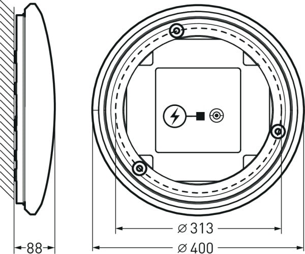 Hublot LED à vasque en polystyrène. Maintien sûr de la vasque par fermetures à baïonnette. Vasque ronde, opale de forme sphérique. Avec une répartition lambertienne des intensités lumineuses. Flux lumineux du luminaire réglable sur 3 niveaux (Multilumen). Flux lumineux du luminaire 800 lm - 2200 lm, puissance raccordée 7,00 W - 18,00 W, rendement lumineux maximale du luminaire 122.22 lm/W. Teinte de lumière blanc neutre, température de couleur (CCT) 4000 K, indice général de rendu des couleurs (IRC) Ra > 80. Tolérance de localisation chromatique (initialement MacAdam) ≤ 5 SDCM. La source lumineuse est remplaçable conformément aux exigences d'écoconception (Règlement (UE) 2019/2020). Corps de luminaire en aluminium. Surface à revêtement blanc (similaire à RAL 9016). Diamètre de la vasque Ø 400 mm, hauteur du luminaire 88 mm. Classe électrique (EN 61140) : I, indice de protection (norme EN 60529) : IP20, degré de résistance aux chocs selon la norme CEI 62262 : IK02, température d’essai au fil incandescent selon la norme CEI 60695-2-11 : 650 °C. Température ambiante admissible (ta): 25 °C Poids: 0.9 kg. Avec driver. L'appareillage est remplaçable conformément aux exigences d'écoconception (Règlement (UE) 2019/2020). Le produit répond aux exigences essentielles des directives européennes applicables et de la loi sur la sécurité des produits et porte le marquage CE. Le luminaire est en outre certifié ENEC par un organisme de contrôle indépendant.