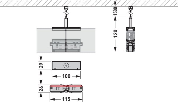 Kit de connexion composé d’un étrier et d’un accouplement conducteur sans dispositif d’alimentation pour une connexion mécanique et électrique intégrée. Kit de suspension par câble composé d’un câble en acier galvanisé, Ø 1,5 mm, crampon de fixation et douille décorative en en acier inoxydable. À utiliser en combinaison avec système de rails conducteurs triphasé (DALI) - Rail.. Convient aux rails conducteurs suspendus. Couleur blanc (similaire à RAL 9016). Dimensions (L x l x H) : 130 mm x 32 mm x 110 mm. Position de la polarité, voir le marquage rouge sur le schéma coté.