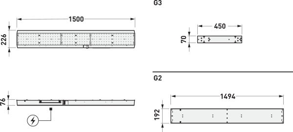 Kit LED pour la rénovation des luminaires existants restant dans ou sur le plafond. Kit LED pour la série Fidesca-PM G3... . La lampada tradizionale e l'alimentatore precedente vengono rimossi e sostituiti dal kit LED. Le corps du luminaire reste sur le lieu d'installation, l'ancien système optique (diffuseur) fermant la pièce est toujours utilisé . Le flux lumineux du système du luminaire existant rénové dépend des effets du vieillissement du système optique installé ainsi que du degré d'encrassement. Le commutateur DIP permet de régler les flux lumineux du système de manière analogue aux types de lampes utilisés dans l'ancien système. Flux lumineux du luminaire réglable sur 3 niveaux (Multilumen). Flux lumineux du luminaire 8900 lm - 12000 lm, puissance raccordée 66 W - 88 W, rendement lumineux maximale du luminaire 136 lm/W. Teinte de lumière blanc neutre, température de couleur (CCT) 4000 K, indice général de rendu des couleurs (IRC) Ra > 90. Tolérance de localisation chromatique (initialement MacAdam) ≤ 3 SDCM. Durée de vie assignée moyenne L70 (tq 25 °C) = 100.000 h., Durée de vie assignée moyenne L80 (tq 25 °C) = 100.000 h. La source lumineuse est remplaçable conformément aux exigences d'écoconception (Règlement (UE) 2019/2020). Corps de luminaire en aluminium, Revêtement poudre. Couleur blanc (similaire à RAL 9016). Dimensions (L x l x H) : 1500 mm x 221 mm x 70 mm. Classe électrique (EN 61140) : I, indice de protection (norme EN 60529) : IP20, degré de résistance aux chocs selon la norme CEI 62262 : , température d’essai au fil incandescent selon la norme CEI 60695-2-11 : 850 °C. Température ambiante admissible (ta): 25 °C Poids: 4.5 kg. Avec appareillage électronique, à gradation numérique (DALI). Appareillage conf. au standard DALI 2 (EN 62386). Possibilité de commutation et de gradation du luminaire au moyen de la fonction bouton-poussoir via les bornes de commande DALI (TouchDim). L'appareillage est remplaçable conformément aux exigences d'écoconception (Règlement (UE) 2019/2020). Ce luminaire qui est prêt au monitoring (MOR) fournit des données d’exploitation permettant une surveillance ou une maintenance prédictive, il est donc compatible avec les services de TRILUX Monitoring Services. Le produit répond aux exigences essentielles des directives européennes applicables et de la loi sur la sécurité des produits et porte le marquage CE.